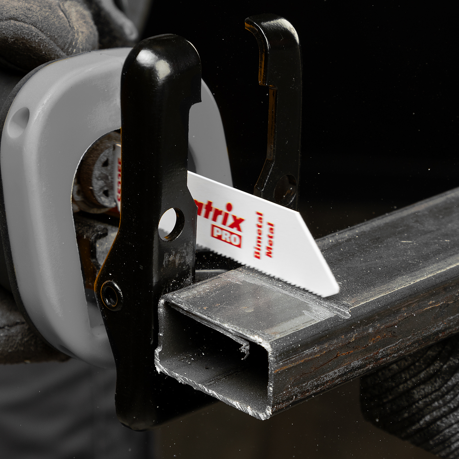 <p>Полотна по металлу для сабельной пилы S522EF Matrix PRO 782008 с рабочей длиной 75 мм и шагом зубьев 1,4 мм, биметаллические (Bimetal), — комплект из 2 шт., предназначенных для распила профилированного алюминия и листового металла толщиной от 1,5 до 4 мм. Полотна имеют универсальные хвостовики и совместимы с большинством моделей сабельных пил. Обеспечивают гладкий и точный рез. Будут полезны на строительной площадке, в слесарной мастерской, а также в быту.</p><h2>Преимущества</h2><ul><li>Прочность в сочетании с высокими режущими свойствами — полотна имеют основу из пружинной стали 65Г и рабочую кромку из быстрорежущей стали М42.</li><li>Повышенная устойчивость к истиранию — зубья закалены до твердости 60-64 HRC.</li><li>Удобная комплектация — в упаковке 2 пилки, которых хватит надолго.</li></ul>