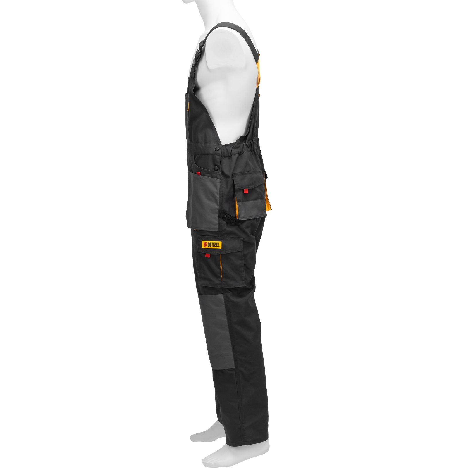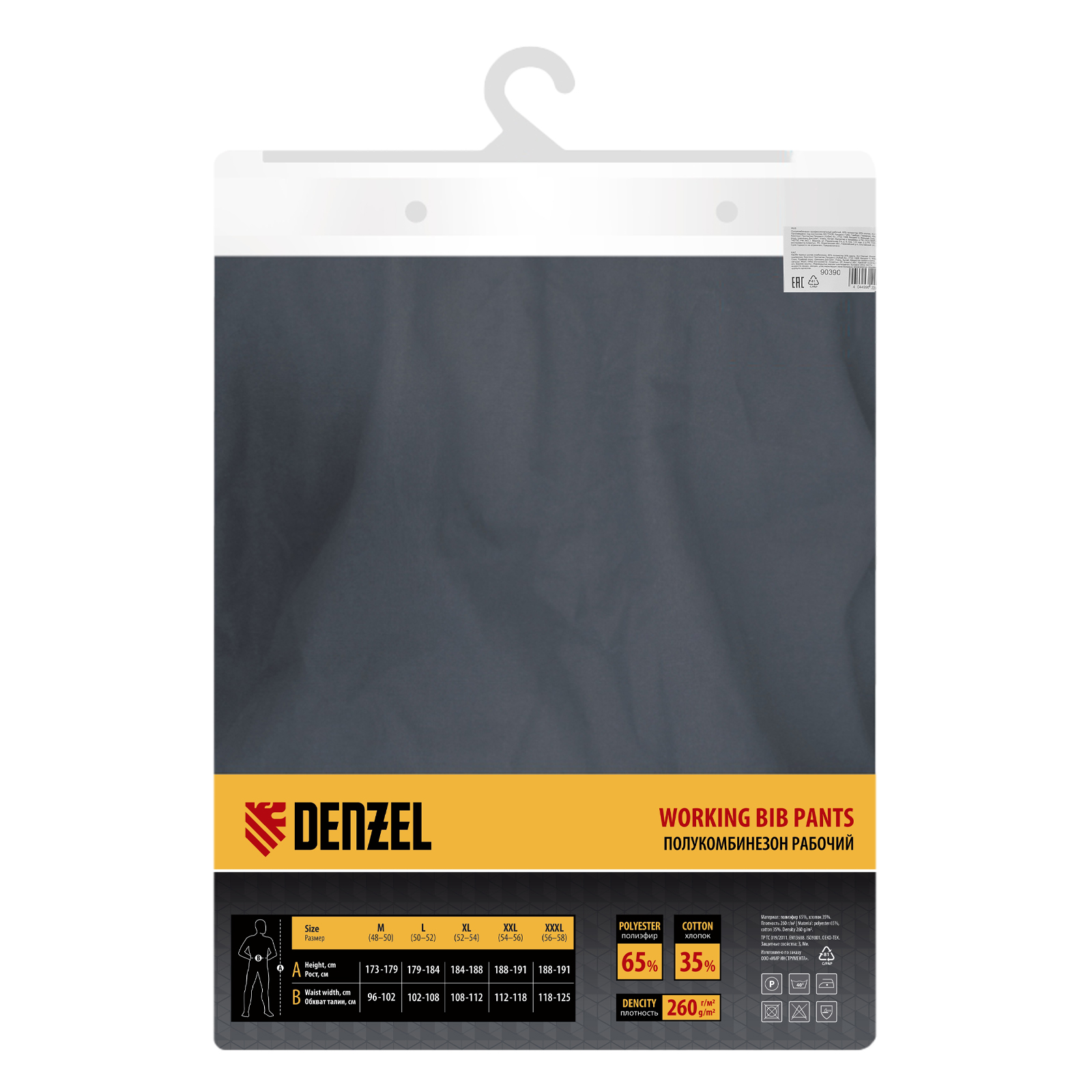 Рабочий полукомбинезон Denzel 90390 размера XXL рассчитан на рост 188-191 см и используется для выполнения профессиональных строительных, ремонтных и производственных работ в теплое время года или в отапливаемом помещении. Защищает пользователя от общих производственных загрязнений, нетоксичной пыли, ветра и незначительных механических воздействий. Изготовлен из ткани плотностью 260 г/м² (65% полиэфир, 35% хлопок). За счет наличия хлопковых волокон в составе ткань хорошо пропускает воздух и приятна на теле, полиэфир обеспечивает устойчивость к истиранию. Полукомбинезон выполнен в практичном темно-сером цвете.
