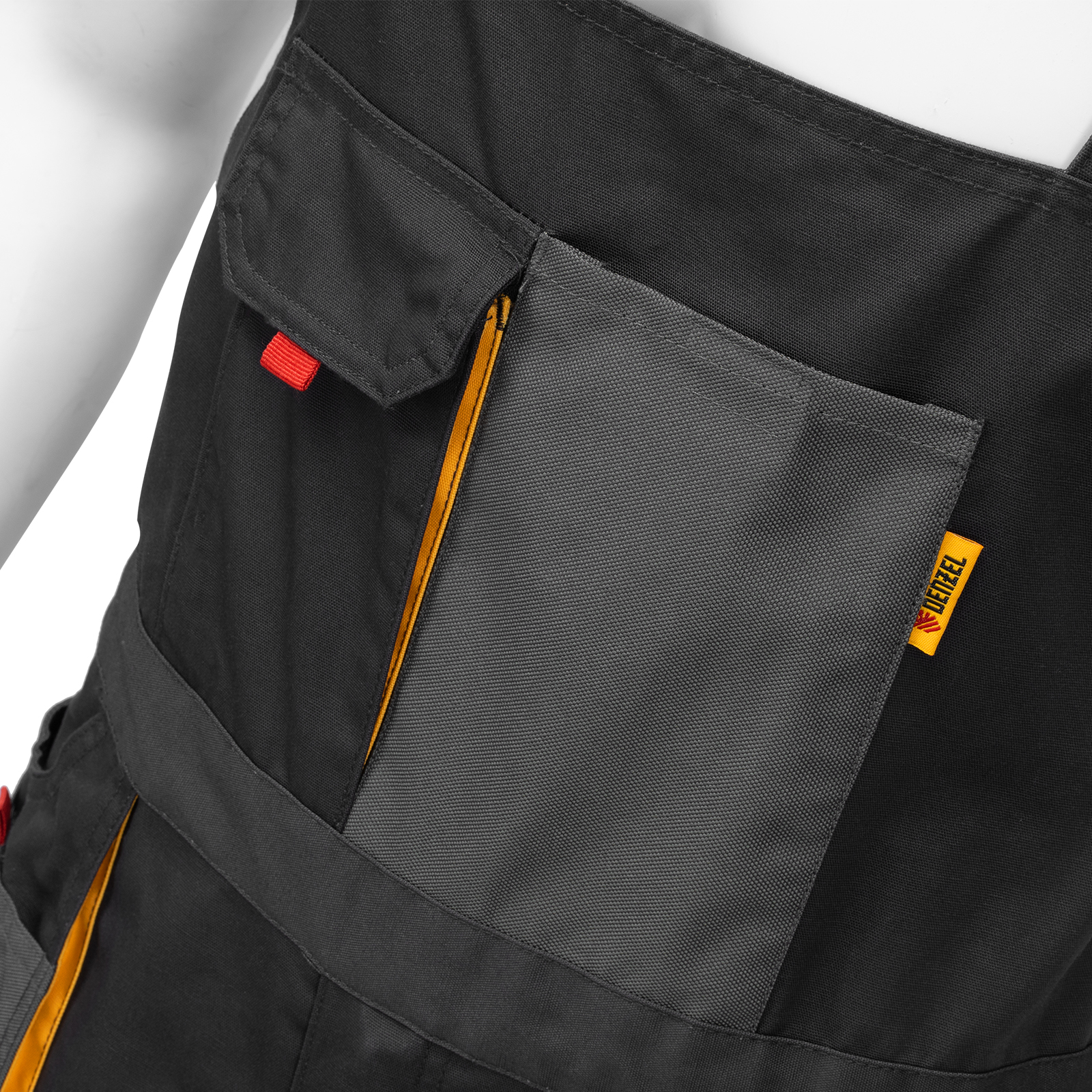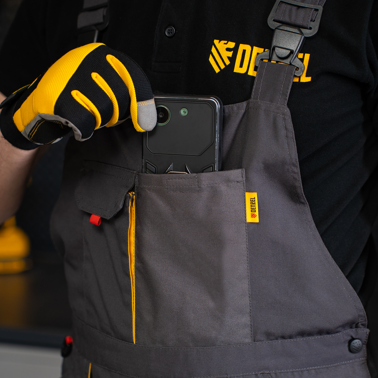- 11 карманов — полукомбинезон снабжен специальными отделениями для инструментов, в карманах с «липучками» можно разместить мобильный телефон, крепеж и необходимые мелочи.