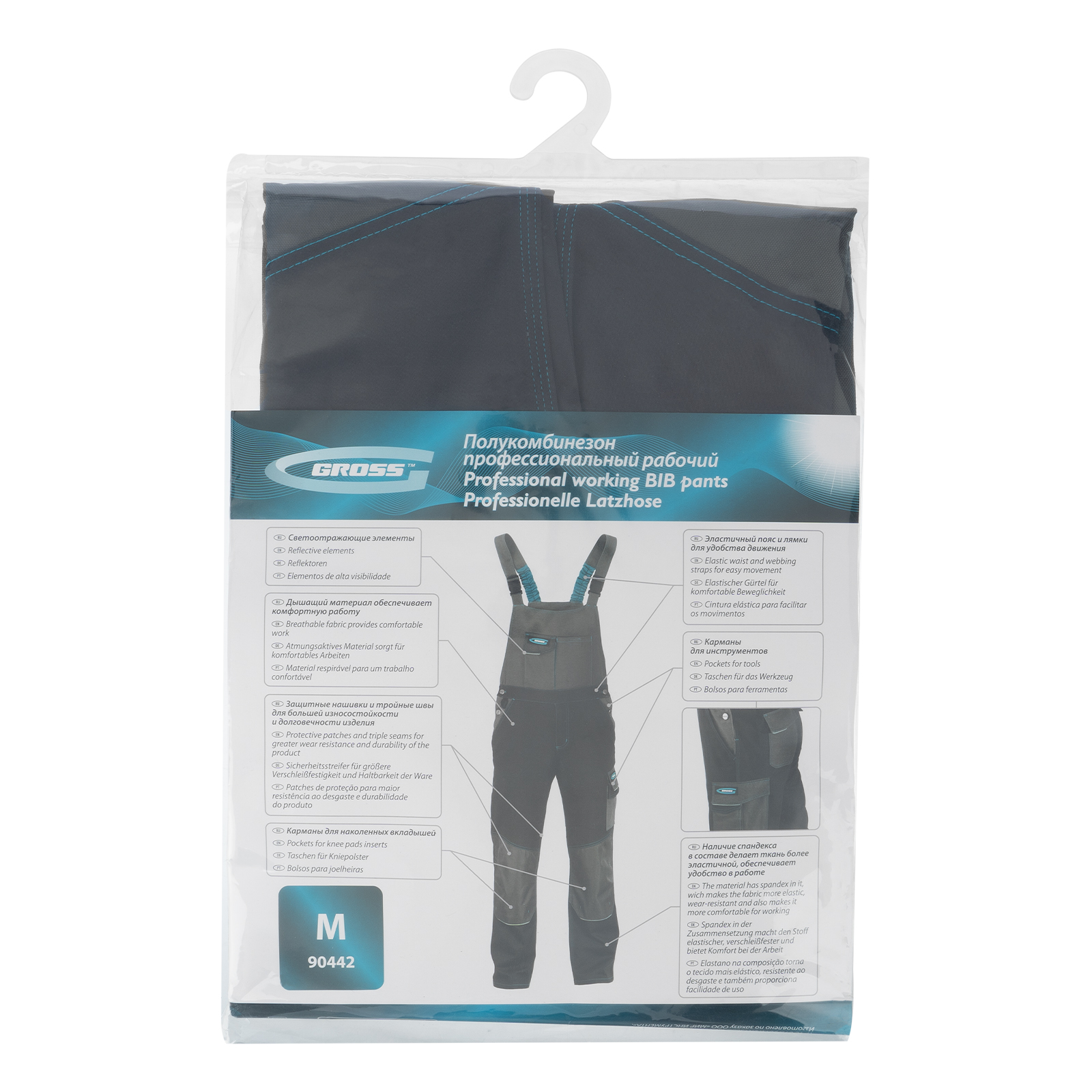 Профессиональные рабочий полукомбинезон Gross 90442 размера M защищает пользователя от общих производственных загрязнений и механических воздействий (истираний). Подойдет для выполнения различных видов работ в теплое время года или в отапливаемом помещении. Изготовлен из смесовой ткани (хлопок — 97%, спандекс 3%). Выполнен в практичном темно-сером цвете.