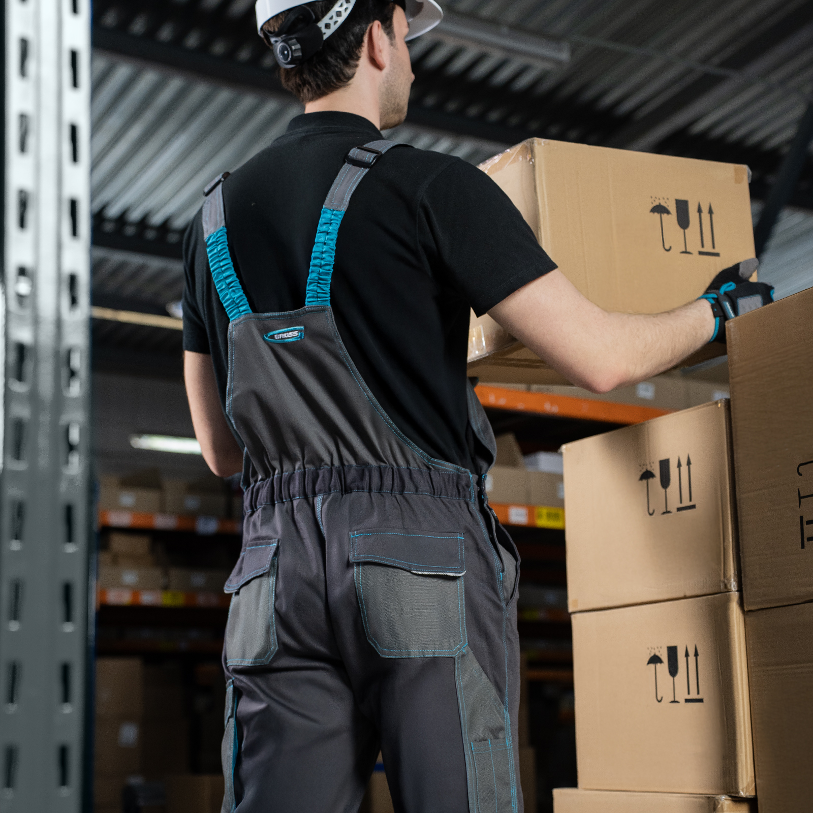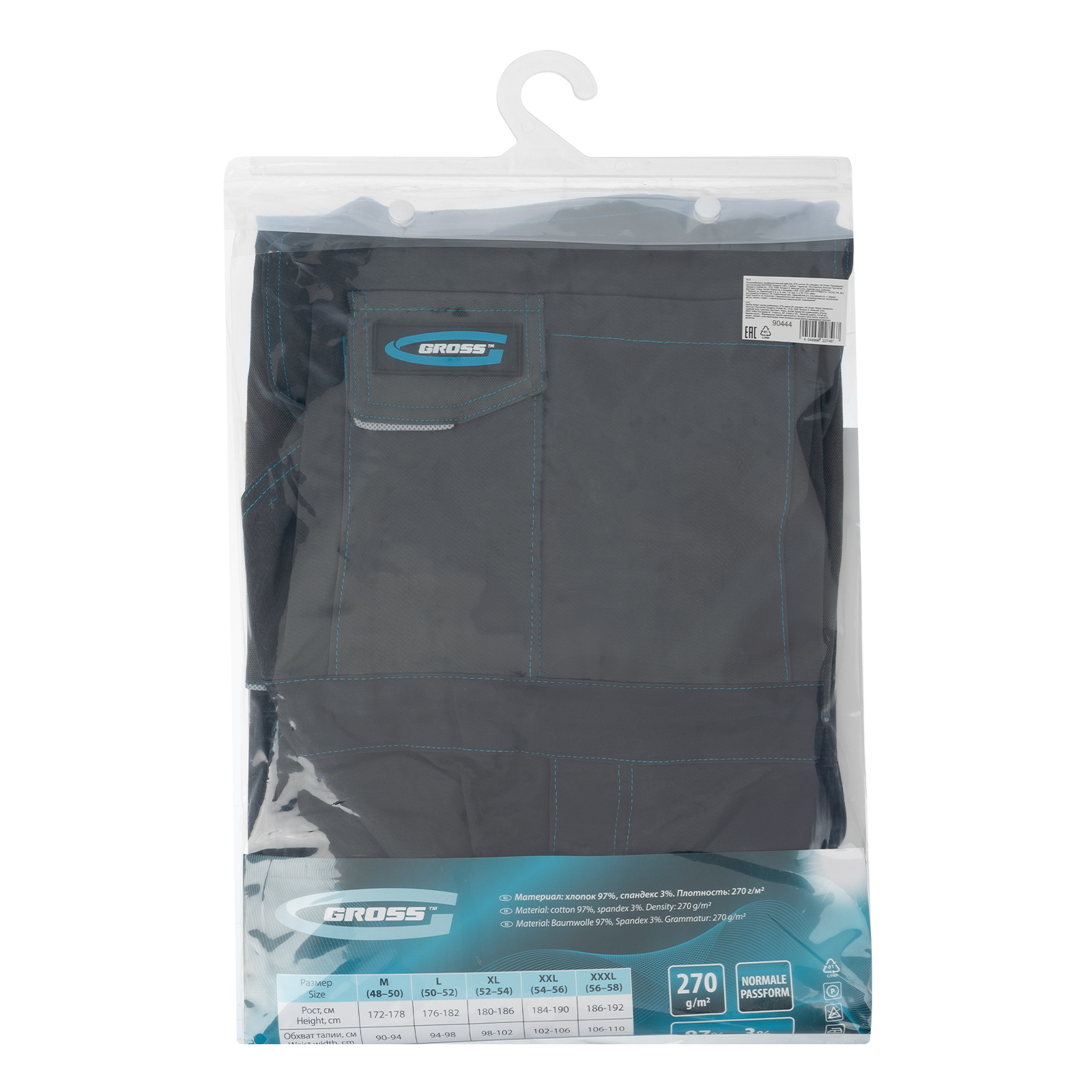 Профессиональные рабочий полукомбинезон Gross 90444 размера XL защищает пользователя от общих производственных загрязнений и механических воздействий (истираний). Подойдет для выполнения различных видов работ в теплое время года или в отапливаемом помещении. Изготовлен из смесовой ткани (хлопок — 97%, спандекс 3%). Выполнен в практичном темно-сером цвете.