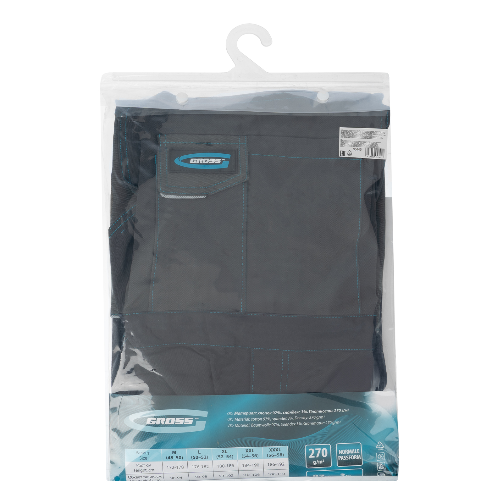 Профессиональные рабочий полукомбинезон Gross 90445 размера XXL защищает пользователя от общих производственных загрязнений и механических воздействий (истираний). Подойдет для выполнения различных видов работ в теплое время года или в отапливаемом помещении. Изготовлен из смесовой ткани (хлопок — 97%, спандекс 3%). Выполнен в практичном темно-сером цвете.