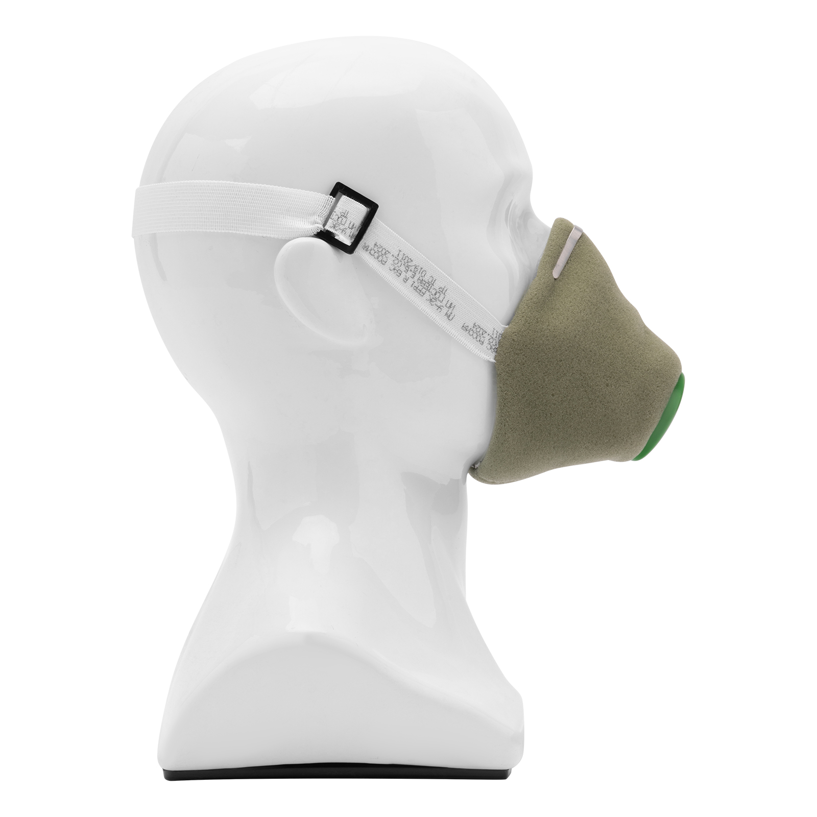 - Полумаска выполнена из поролона и дополнительного слоя полимерного материала с внутренней стороны, которые не пропускают вредные вещества.