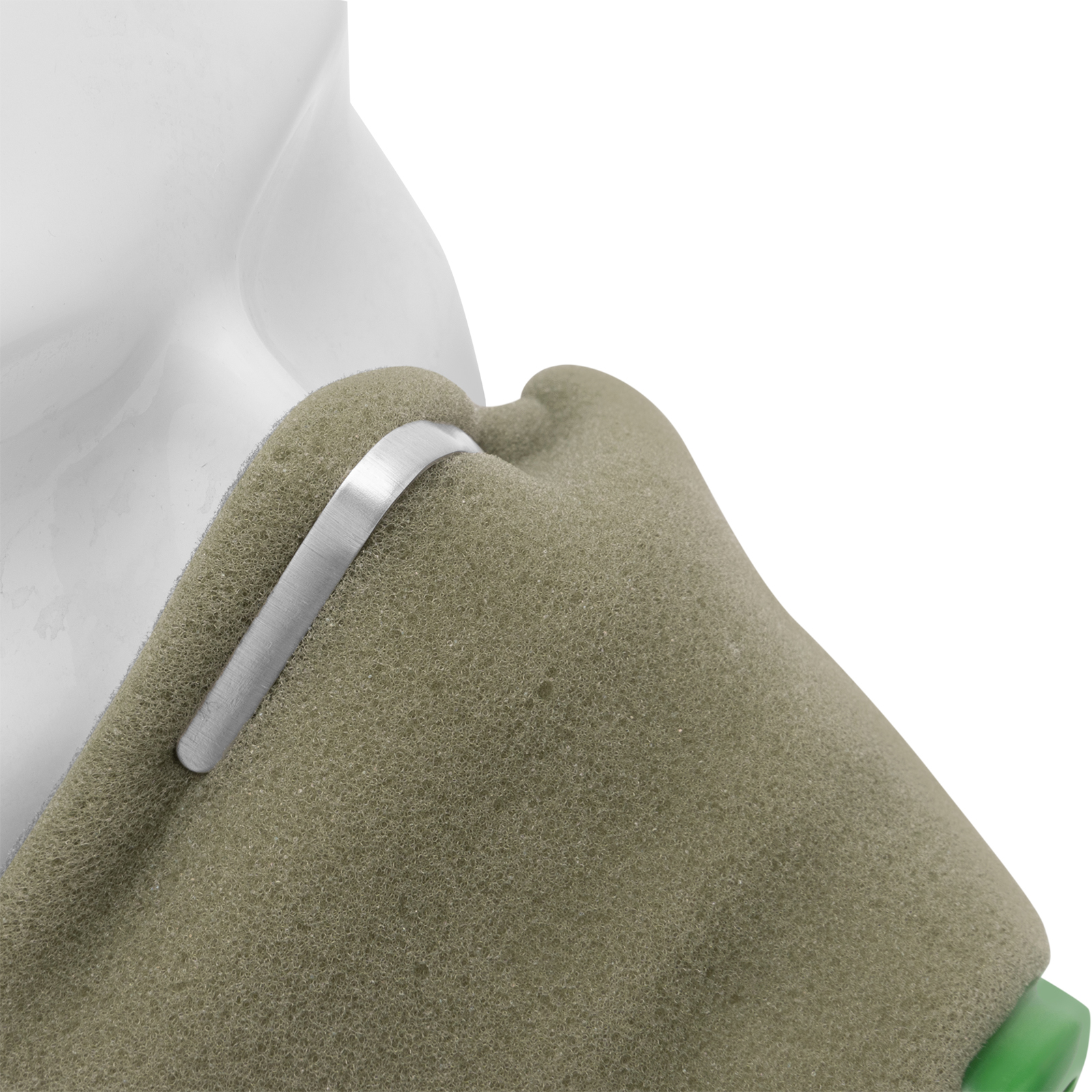 - Оголовное крепление с регулятором и носовой зажим обеспечивают надежную фиксацию средства защиты на лице.