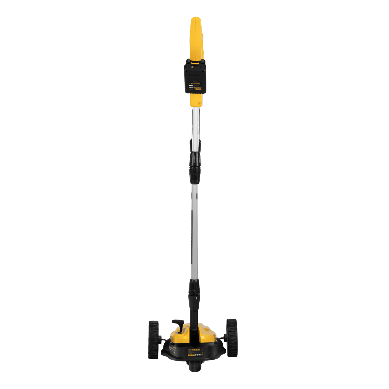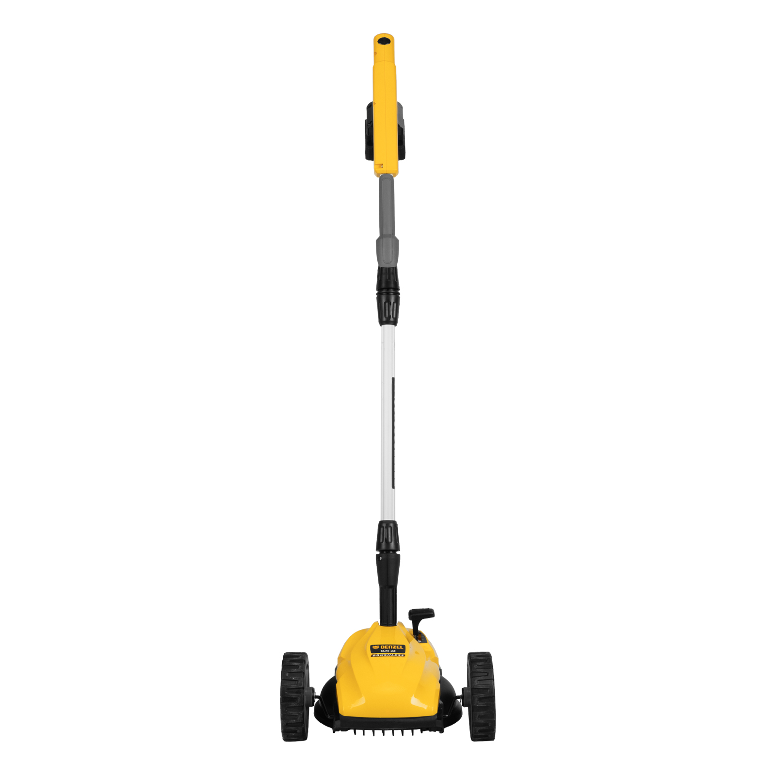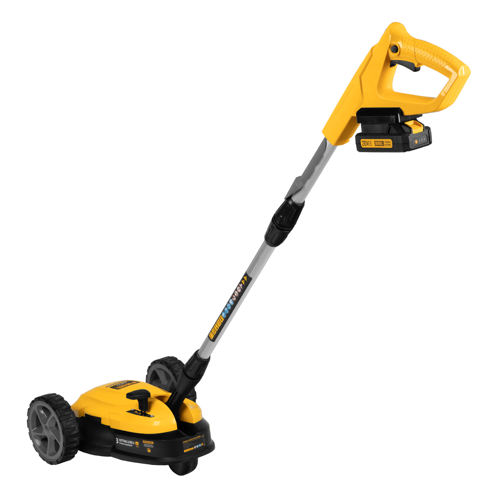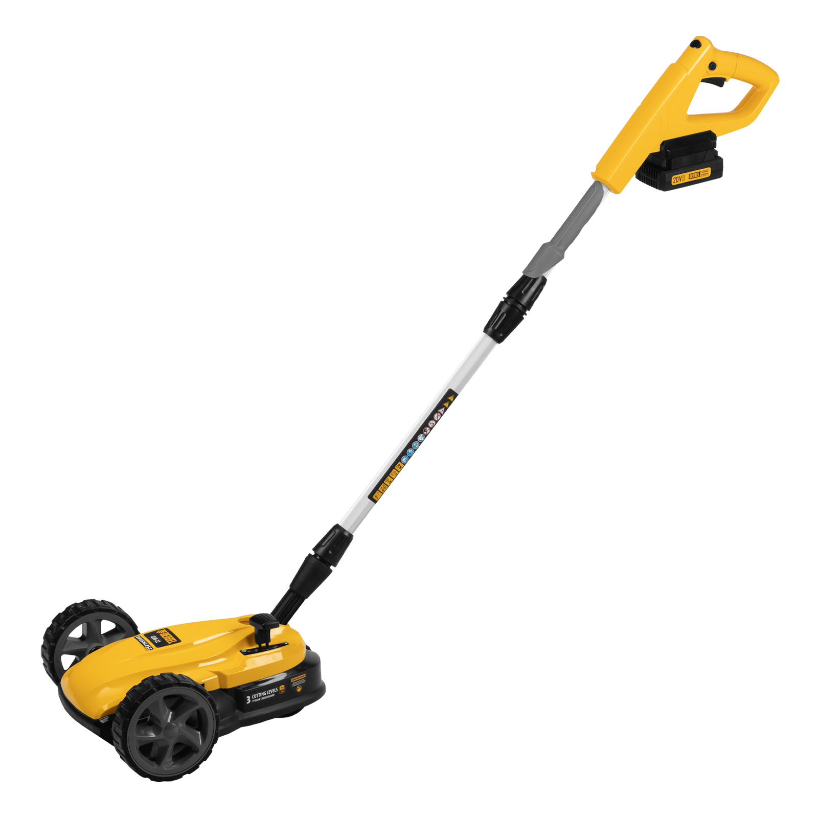 - Мобильность — благодаря небольшому весу 3,7 кг (без АКБ), двум большим и одному малому сферическому колесу технику легко перемещать, косить траву удобно даже в узких и труднодоступных местах.