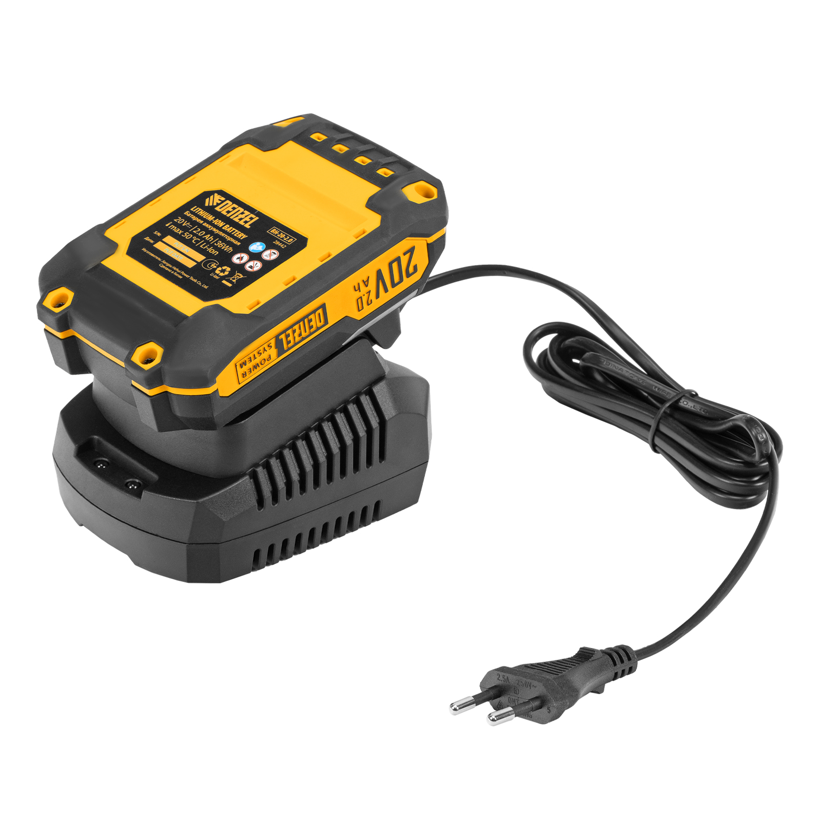 - Универсальность — газонокосилка совместима со всеми аккумуляторными батареями единой платформы Denzel Power System 20V.