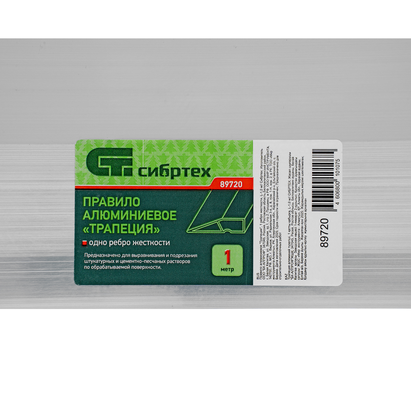 Алюминиевое правило Сибртех «Трапеция» 89720 длиной 1 м, с 1 ребром жесткости, — инструмент для выравнивания поверхностей после нанесения штукатурных и цементно-песчаных растворов. Заостренный край позволяет легко подрезать и удалять излишки смеси. Инструмент пригодится при проведении строительных и ремонтных работ.