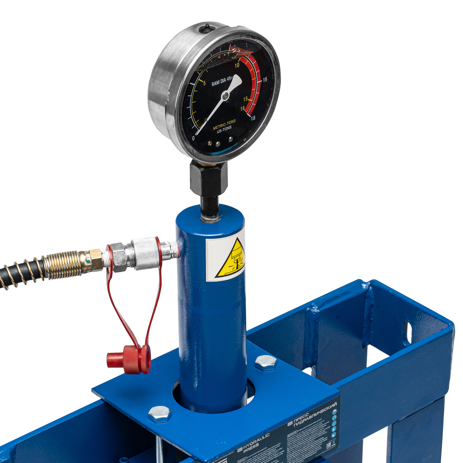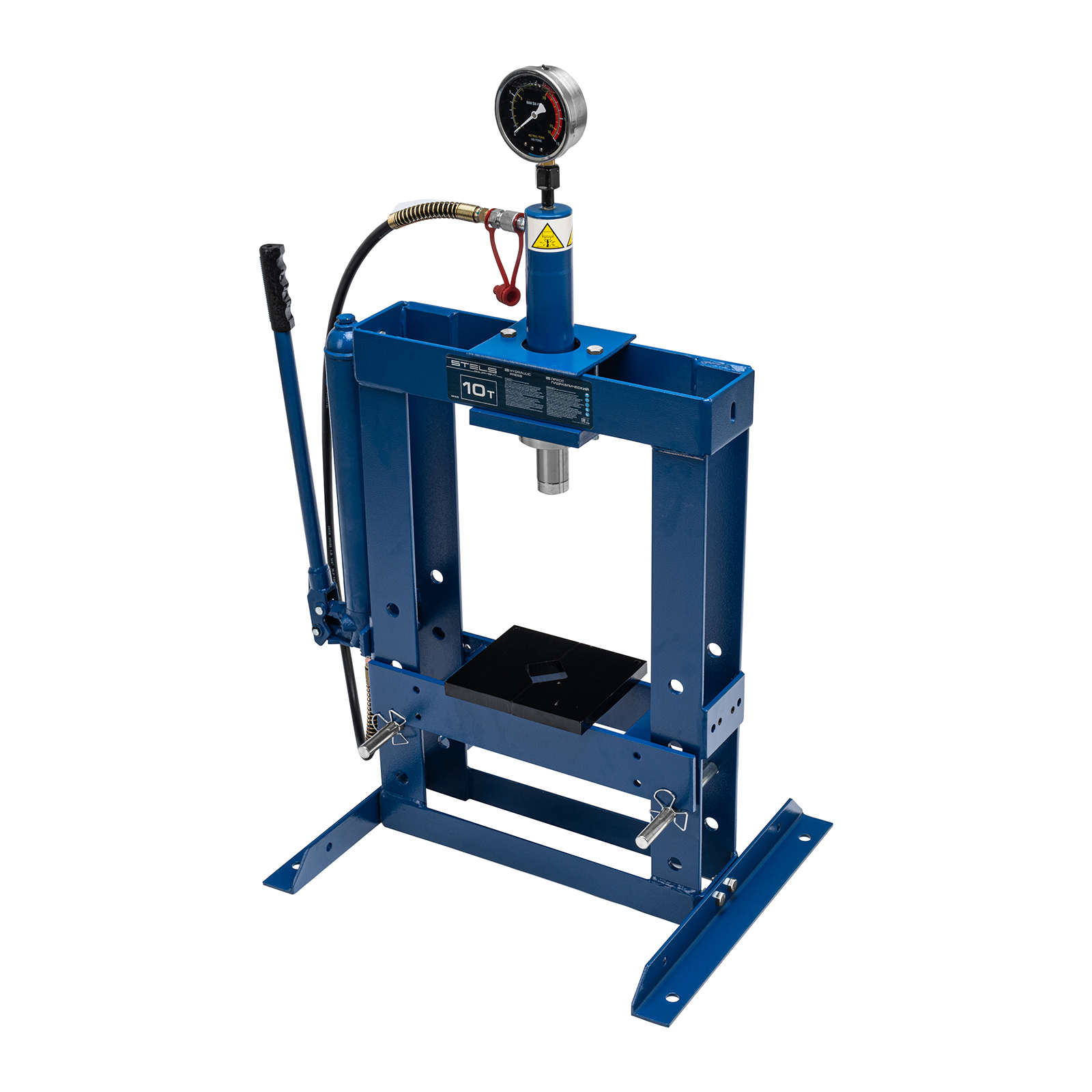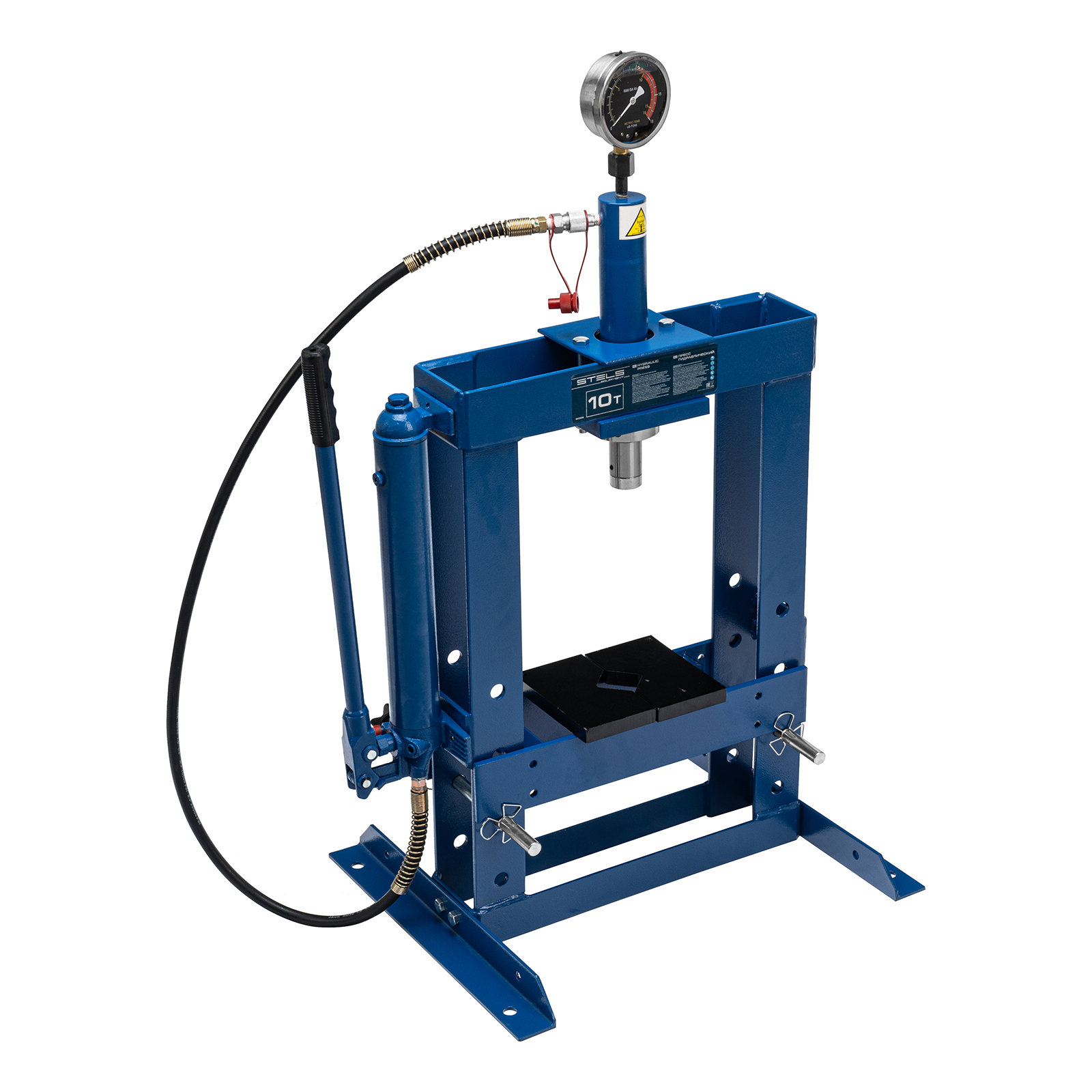 Гидравлический настольный пресс Stels 52305 с манометром, развивающий усилие до 10 тонн, — оборудование для запрессовки и выпрессовки деталей, например, подшипников, втулок, сайлентблоков, рычагов, штифтов. Фиксируется на столе — в опорах имеются отверстия для крепежа. Отличается плавным ходом штока благодаря высокому качеству исполнения гидронасоса и самого штока. Величину прилагаемого усилия можно контролировать при помощи глицеринозаполненного манометра. Пресс пригодится в автомастерской или личном гараже.