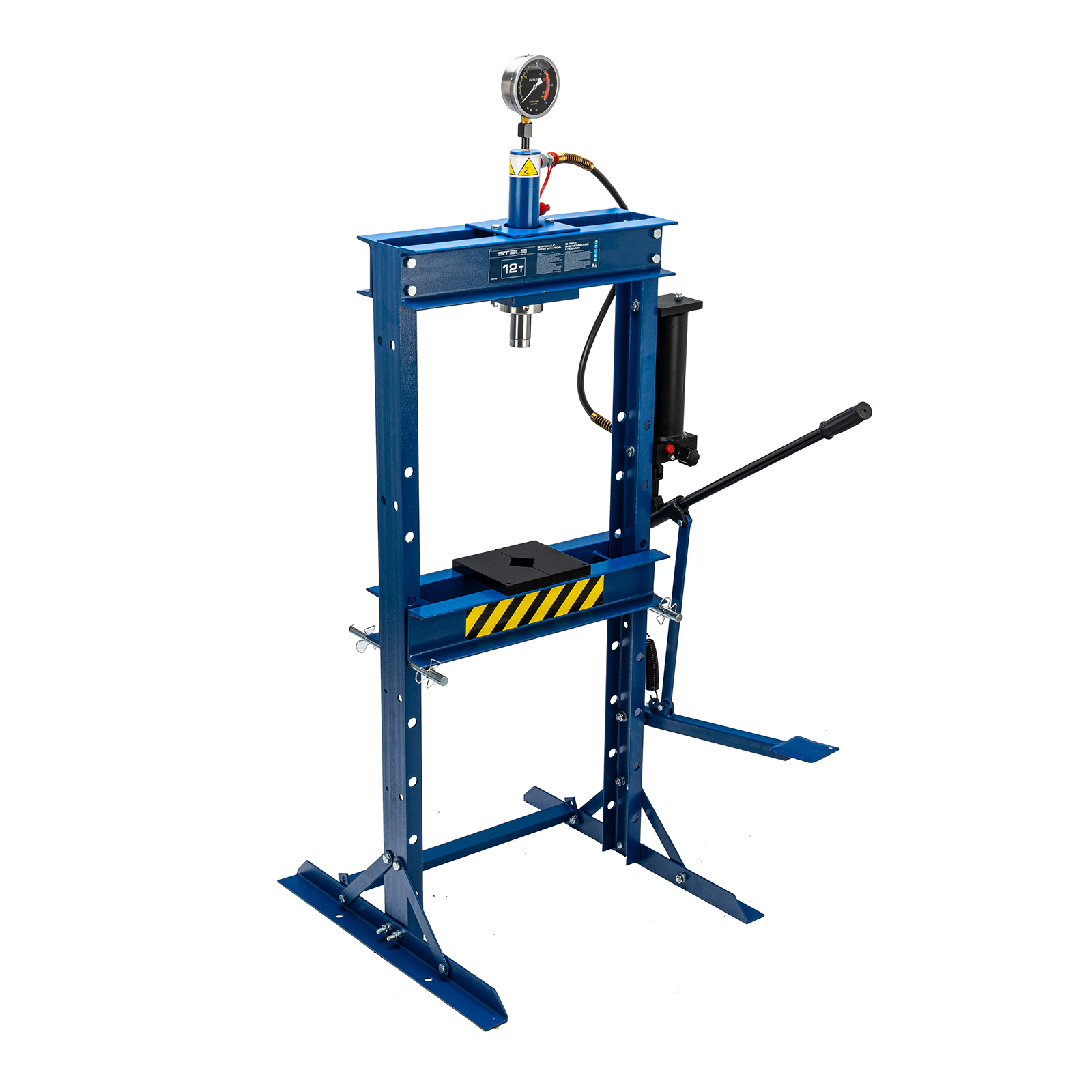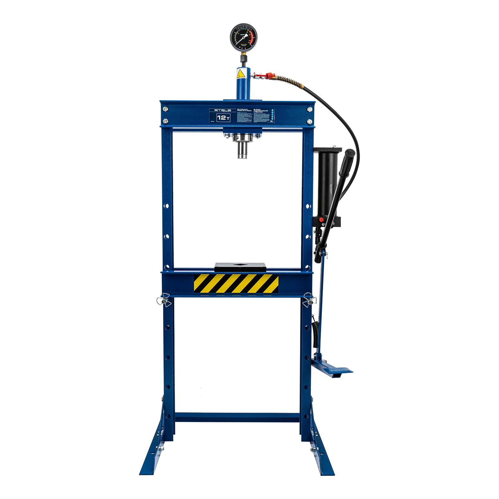 Гидравлический пресс Stels 52312 с манометром и педалью способен воздействовать на предметы с усилием до 12 т. Его используют для монтажа и демонтажа различных деталей — подшипников, сайлентблоков, втулок, штифтов, рычагов. Шток имеет исключительно плавный ход благодаря высокому уровню исполнения гидравлического насоса и самого штока. Для нагнетания давления можно использовать как ручной, так и ножной привод, что облегчает работу и упрощает контроль за процессом прессования. Пресс пригодится для ремонта автомобилей — самостоятельного или в автосервисе.