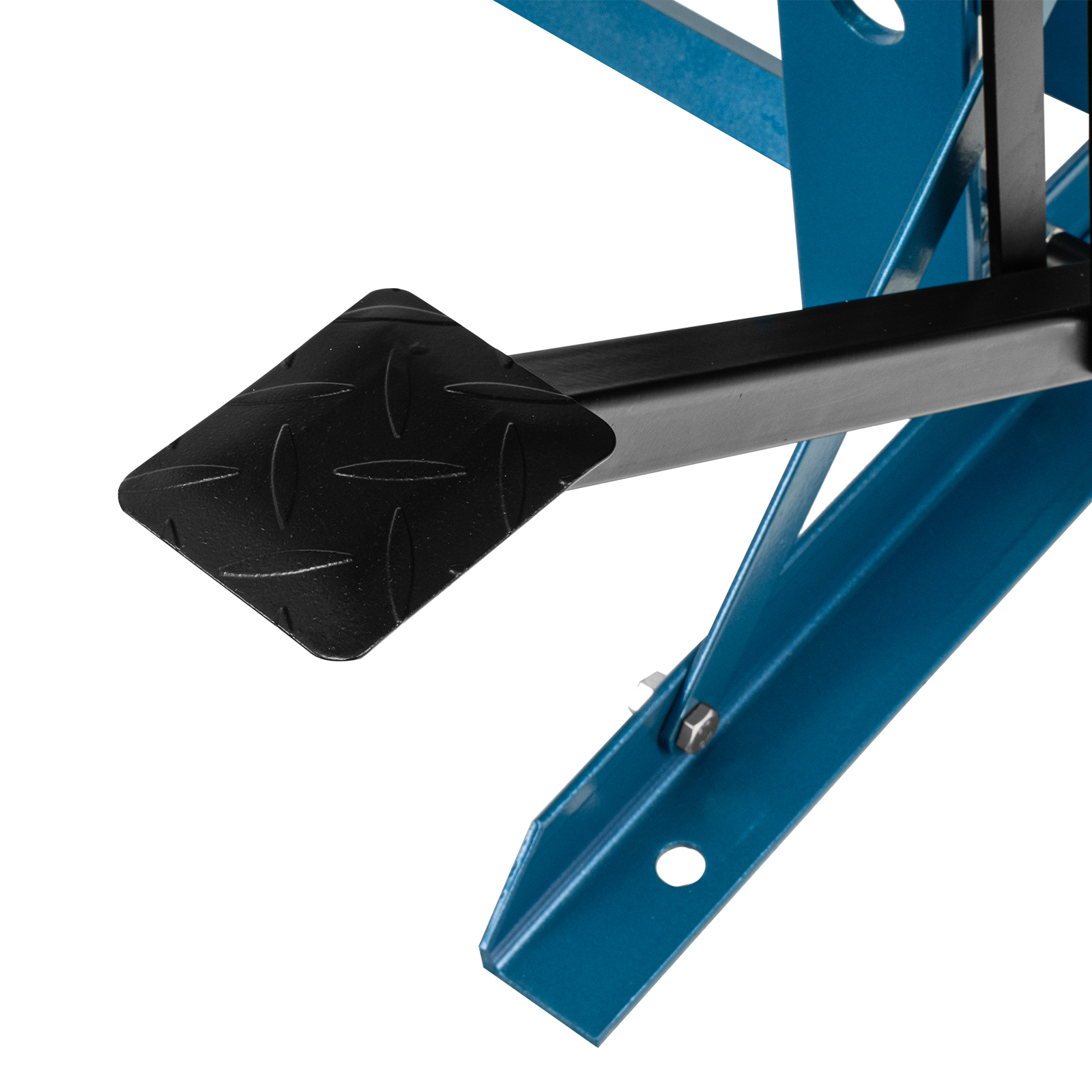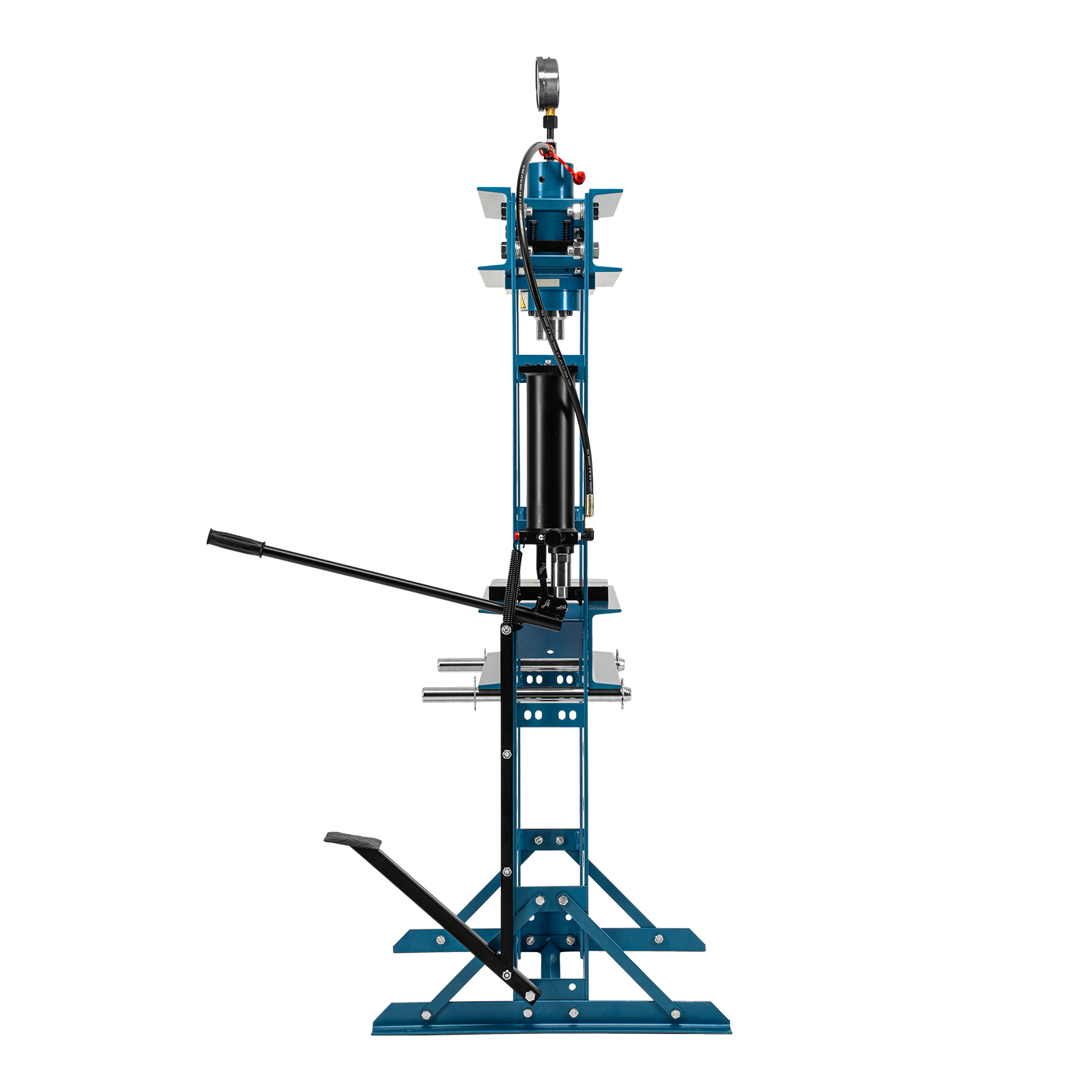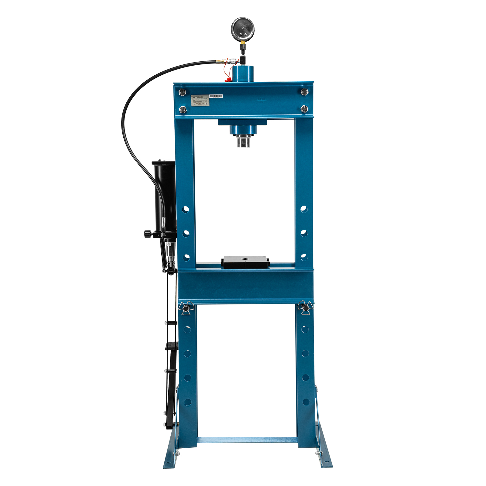 - Удобная эксплуатация — гидравлический насос с ручным приводом обеспечивает плавный ход штока, использование педали облегчает работу и повышает производительность.
