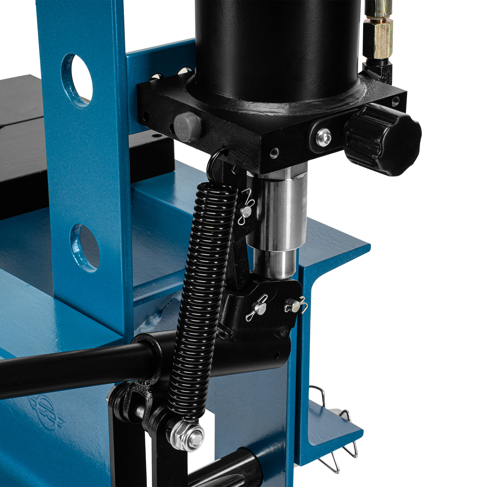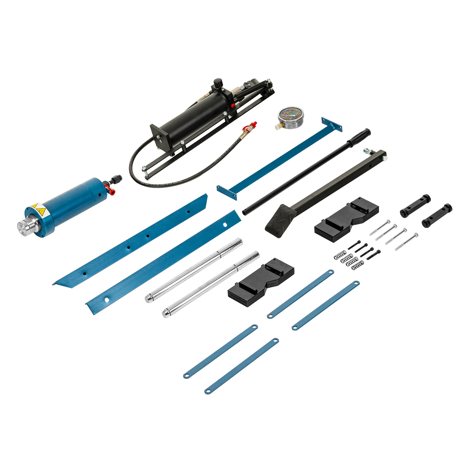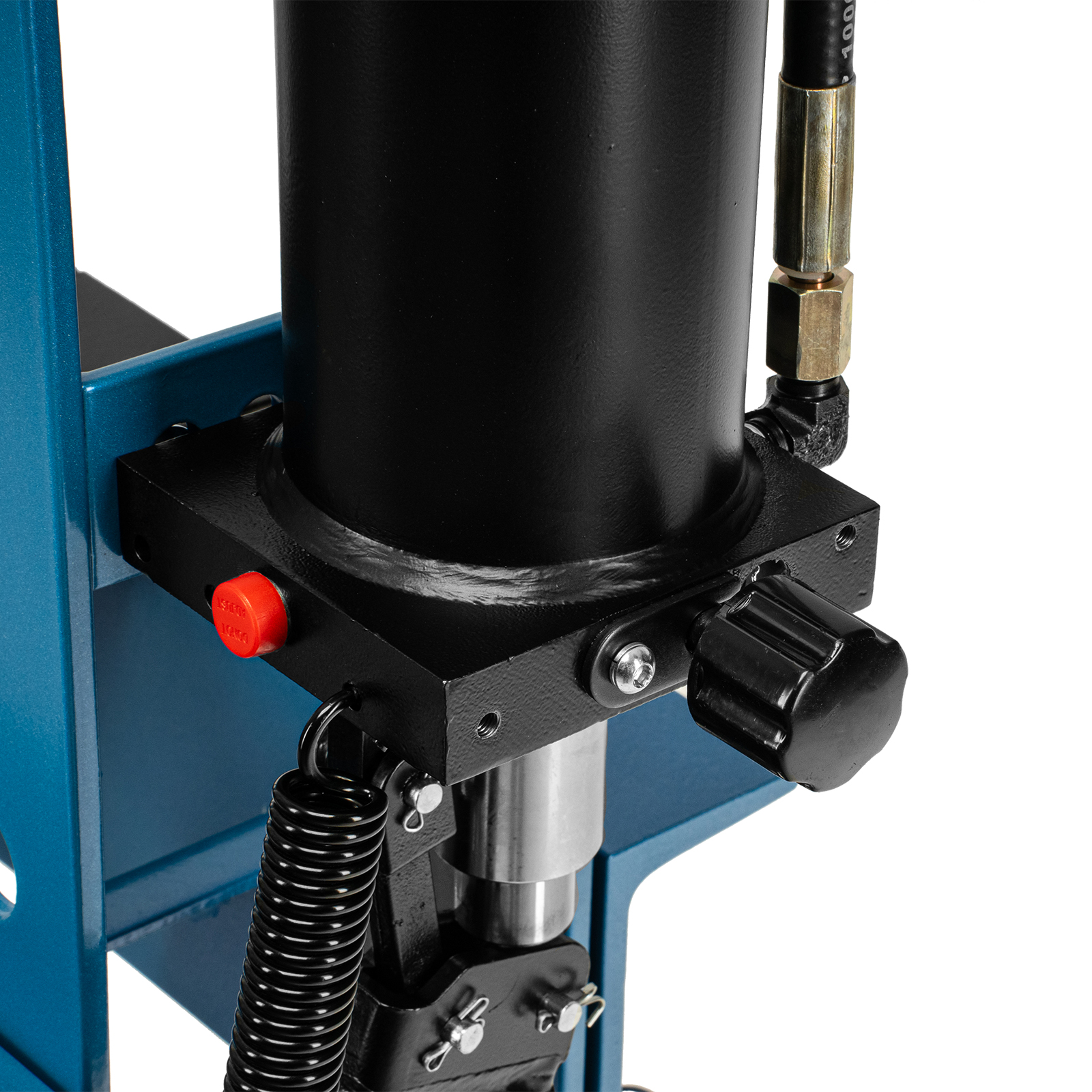 - Удобная эксплуатация — гидравлический насос с ручным приводом обеспечивает плавный ход штока, использование педали облегчает работу и повышает производительность.