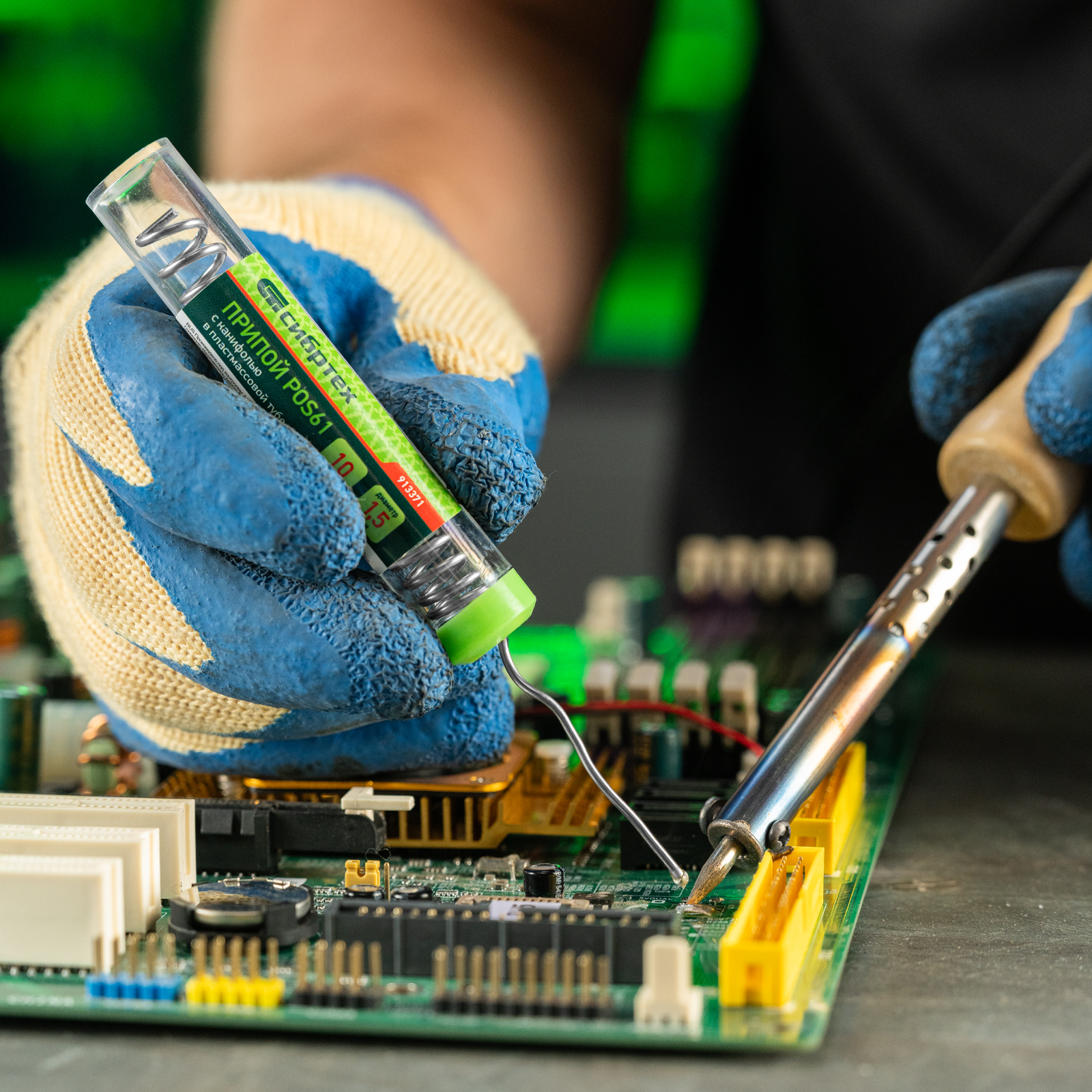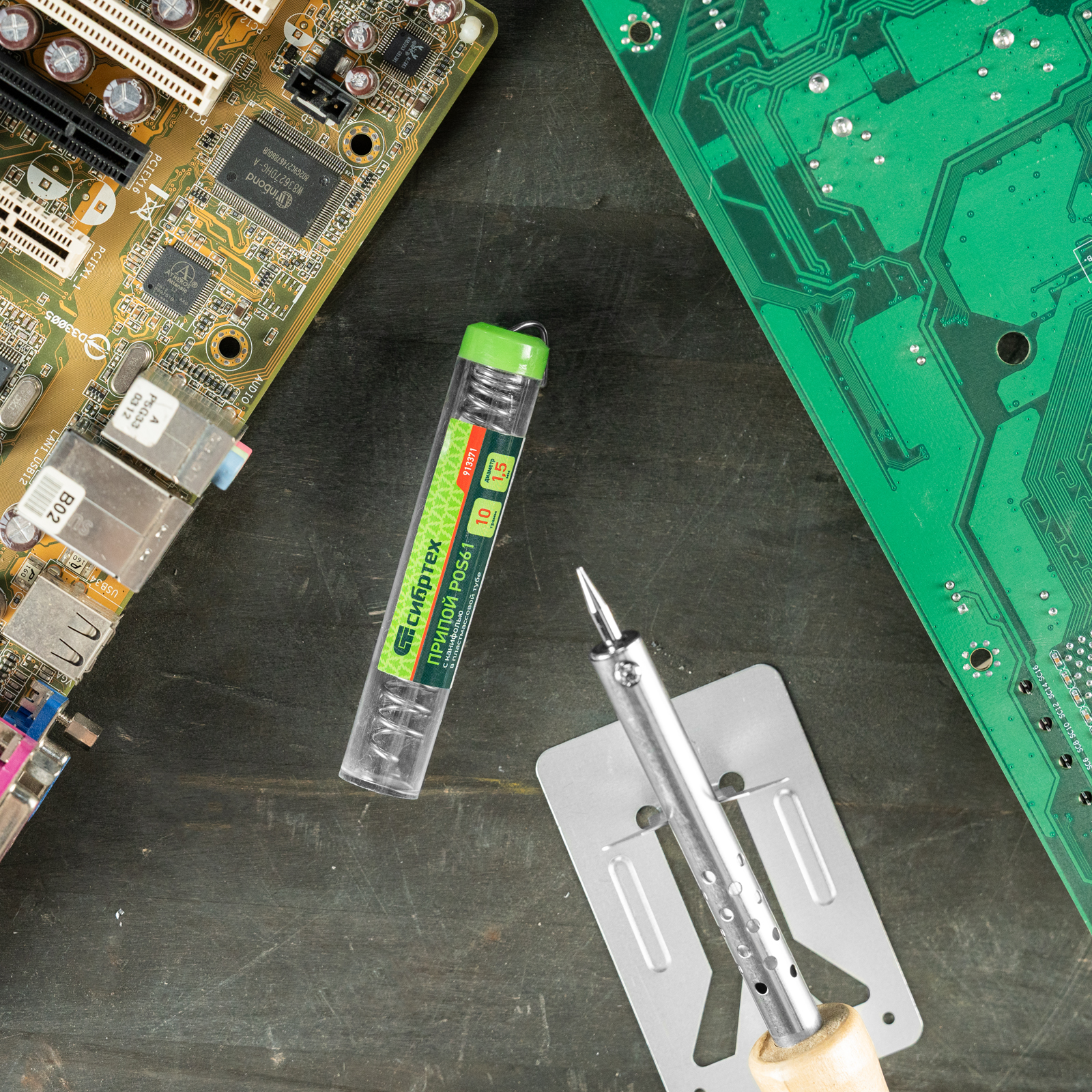 Припой с канифолью POS61 Сибртех 913371 диаметром 1,5 мм и весом 10 г, в пластмассовой тубе, — материал для пайки, в расплавленном состоянии соединяющий металлические детали. Содержит 39% свинца, 61% олова (Sn61% + Pb39%) и канифоль, не требует очистки припаиваемых поверхностей. Будет полезен для бытового ремонта радиоэлектронной аппаратуры.