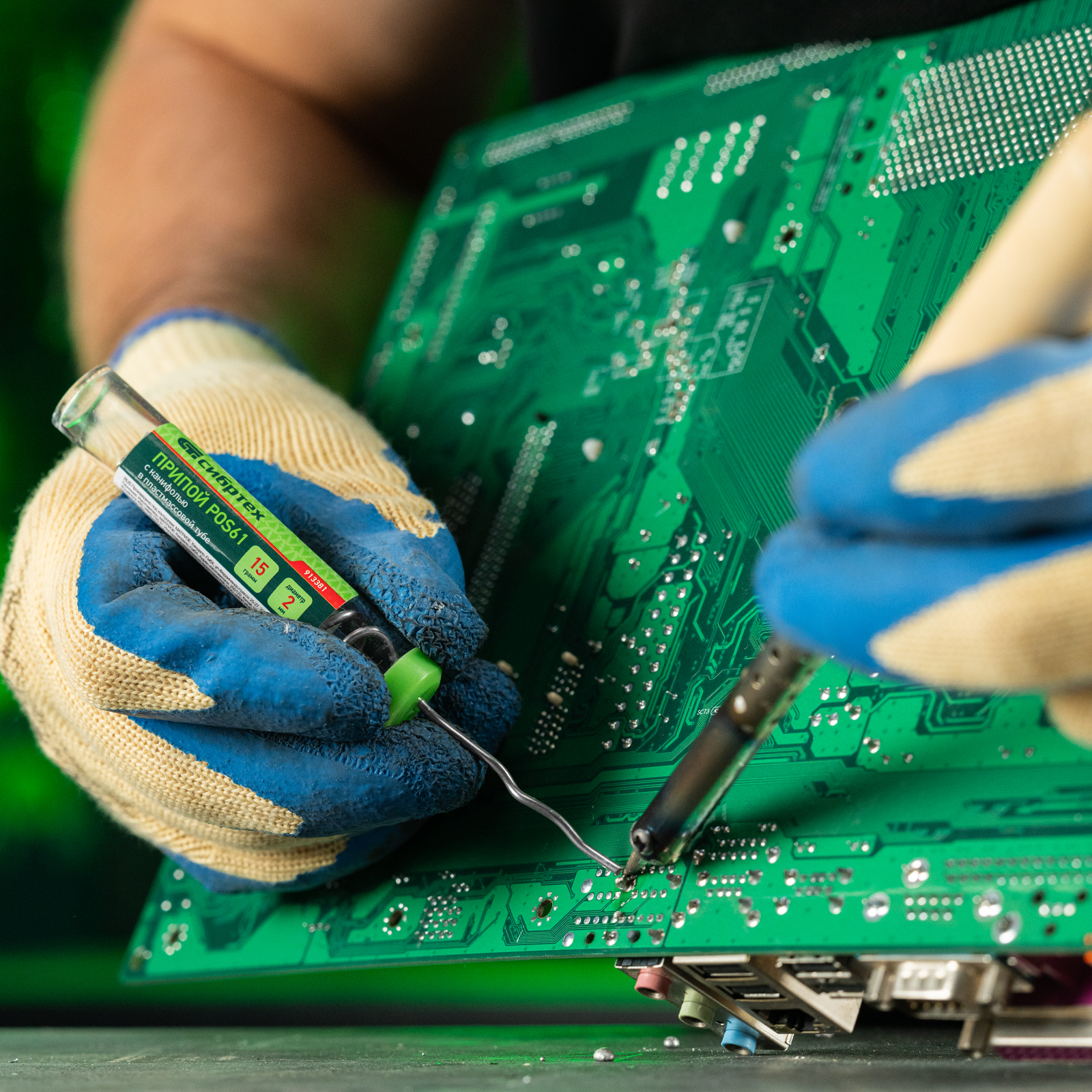 - Невысокая температура плавления 190 °C — можно не опасаться перегрева электронных компонентов.