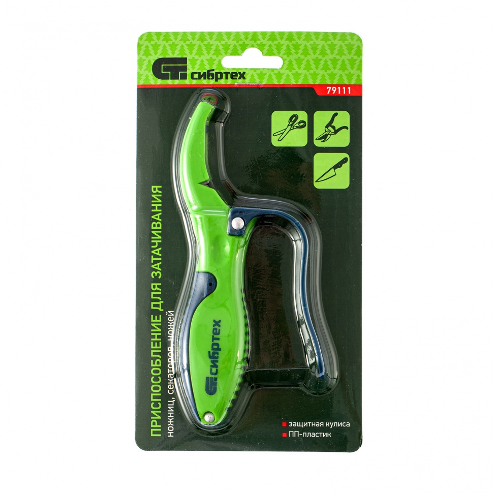 Приспособление для затачивания Сибртех 79111 поможет вернуть остроту режущим кромкам ножниц, секаторов и ножей. Точильные камни из твердого сплава ВК-6 успешно справляются с этой задачей. Прочный пластиковый корпус рассчитан на длительное применение. Приспособление не требует особых навыков использования, поэтому с ним легко справится любая хозяйка.