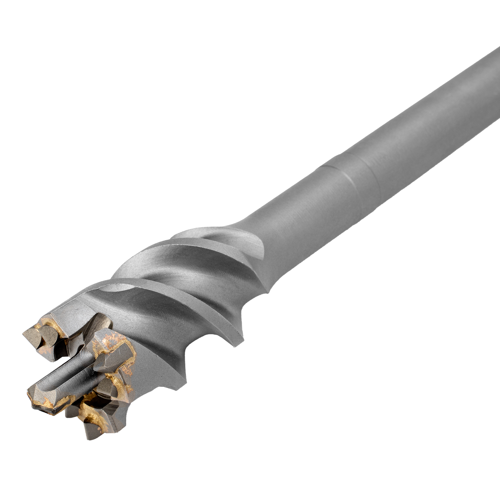 - Эффективная работа — особая конструкция рабочей головки позволяет проходить армированный бетон без риска деформации бура.