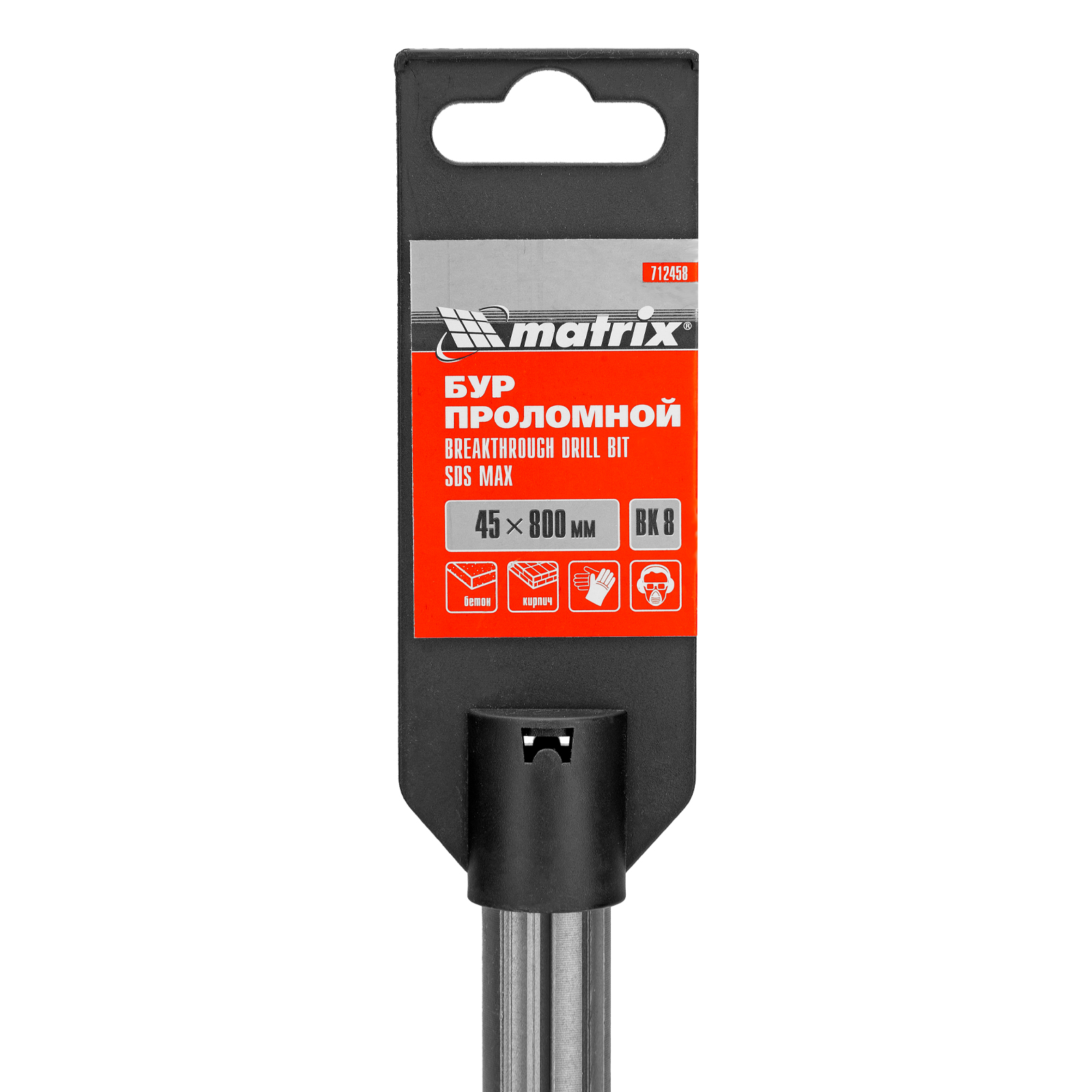 Проломной бур Matrix 712458 с хвостовиком SDS MAX позволяет получать сквозные отверстия диаметром 4,5 см и длиной 80 см в стенах из кирпича и бетона, полах, перекрытиях. Применяется совместно с высокомощными перфораторами SDS Max. Оптимален для прокладки газо- и водопровода, электрических коммуникаций, магистралей кондиционеров.
