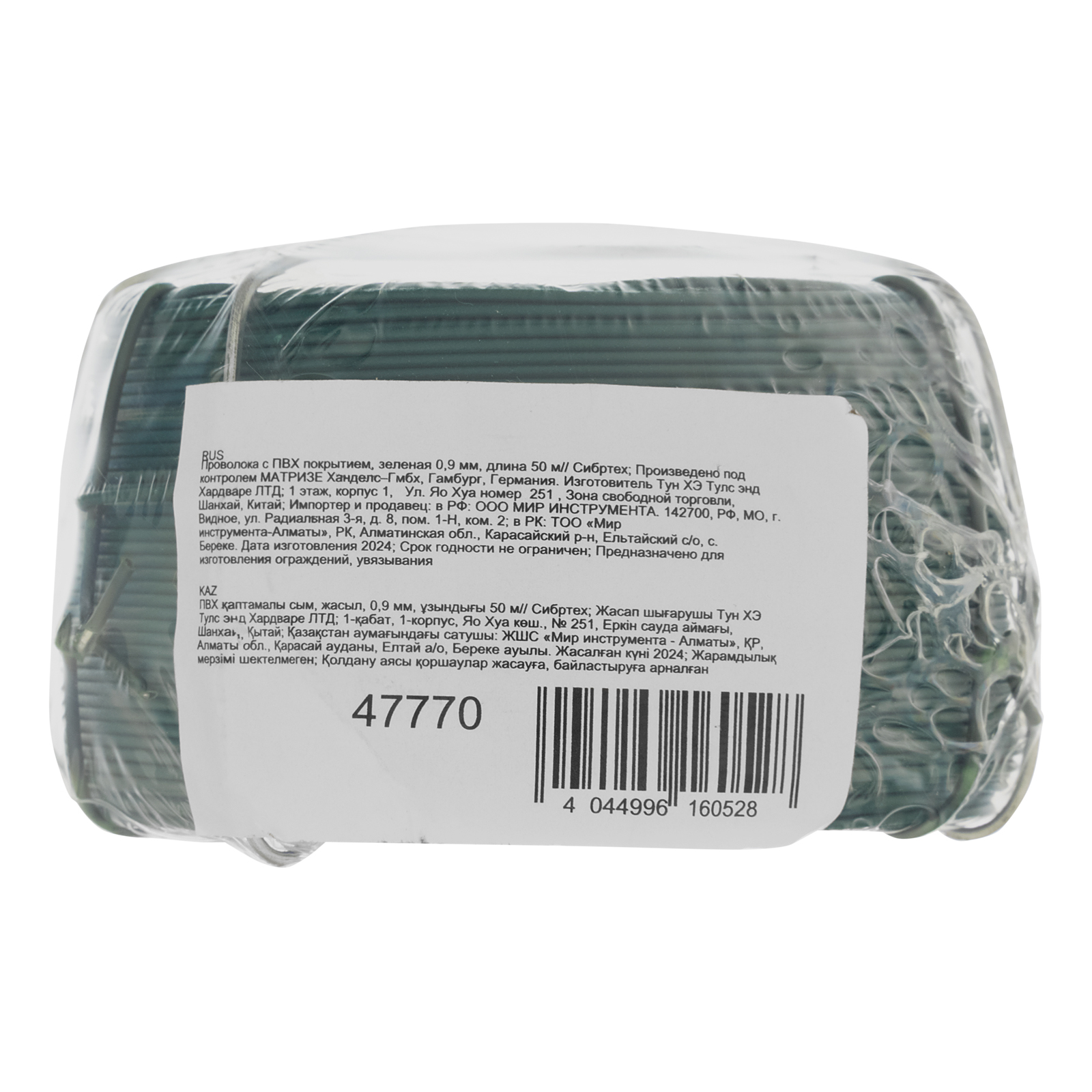 Зеленая проволока с ПВХ покрытием Сибртех 47770 диаметром 0,9 мм и длиной 50 м пригодится дачникам при проведении садово-огородных работ. С ее помощью удобно фиксировать растения, подвязывать сетки и шпалеры. Изделие также подходит для увязывания и фиксации различных предметов.