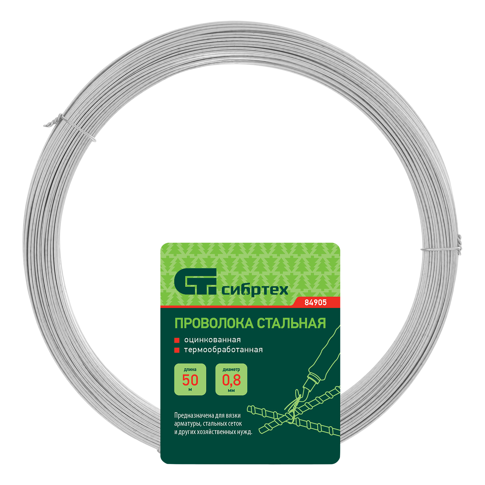 Стальная проволока Сибртех 84905 диаметром 0,8 мм и длиной 50 м, оцинкованная и термообработанная, пригодится в хозяйстве для несложных строительных работ. Применяется для армирования конструкций, обвязки сеток и фиксации различных предметов.