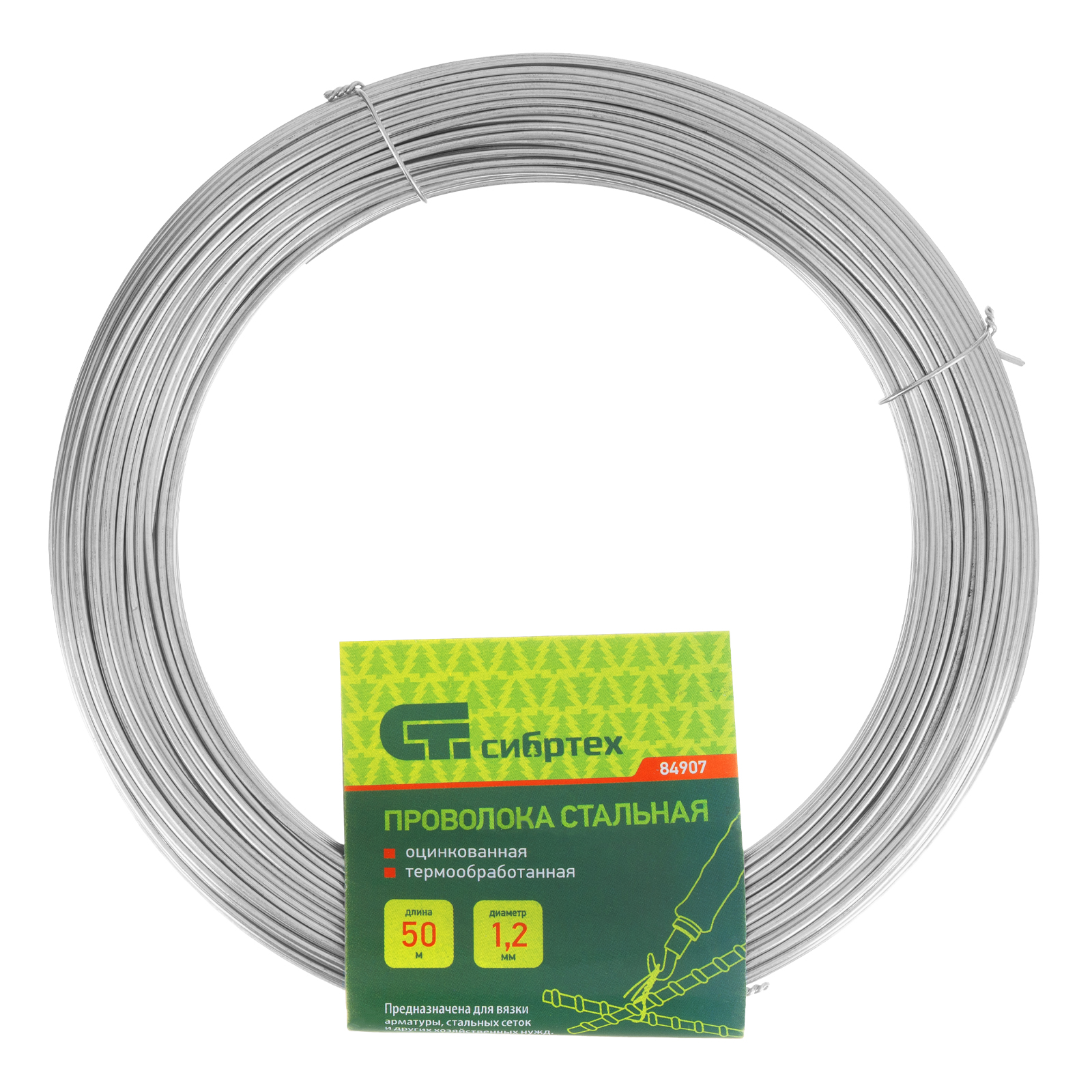 Стальная проволока Сибртех 84907 диаметром 1,2 мм и длиной 50 м, оцинкованная и термообработанная, пригодится в хозяйстве для несложных строительных работ. Применяется для армирования конструкций, обвязки сеток и фиксации различных предметов.