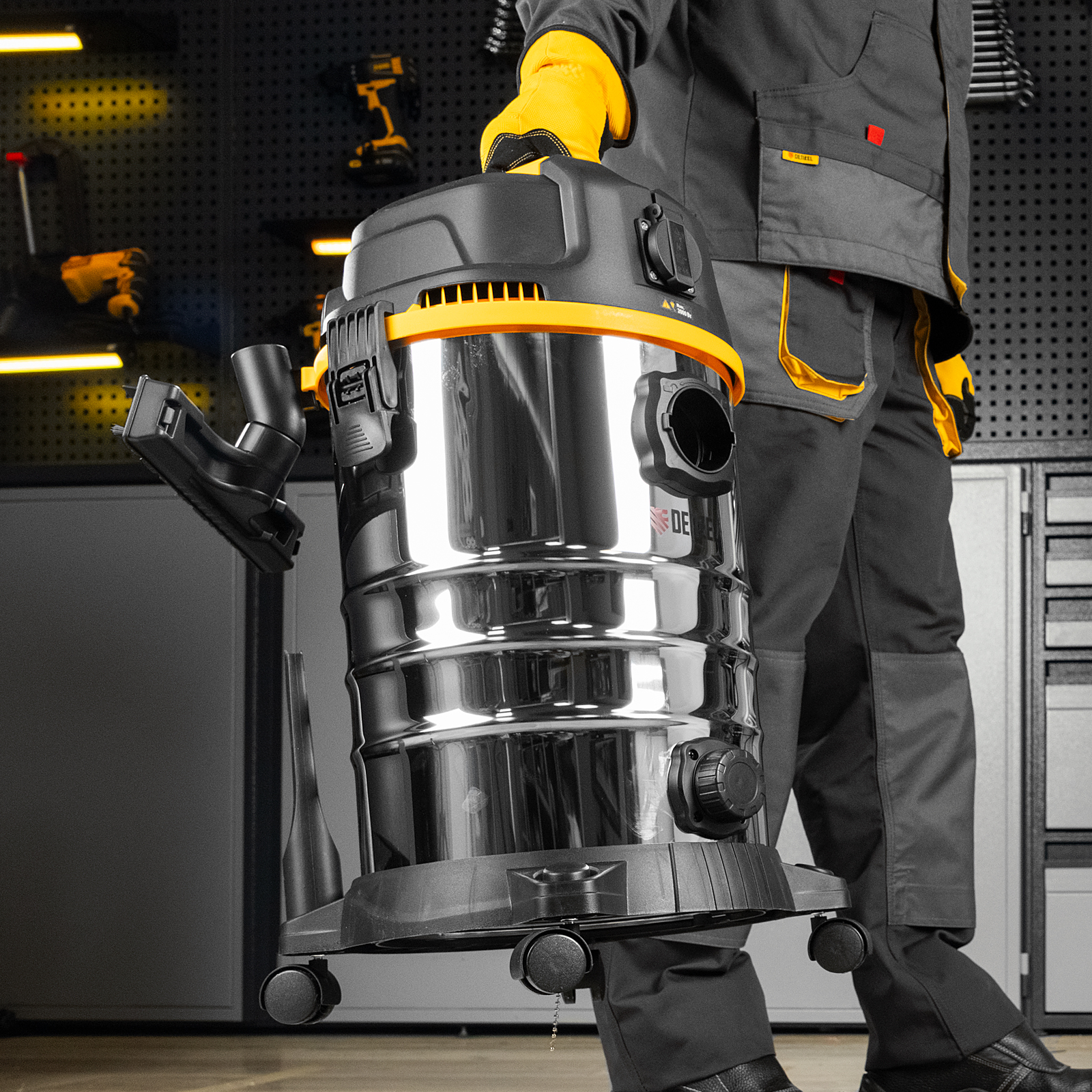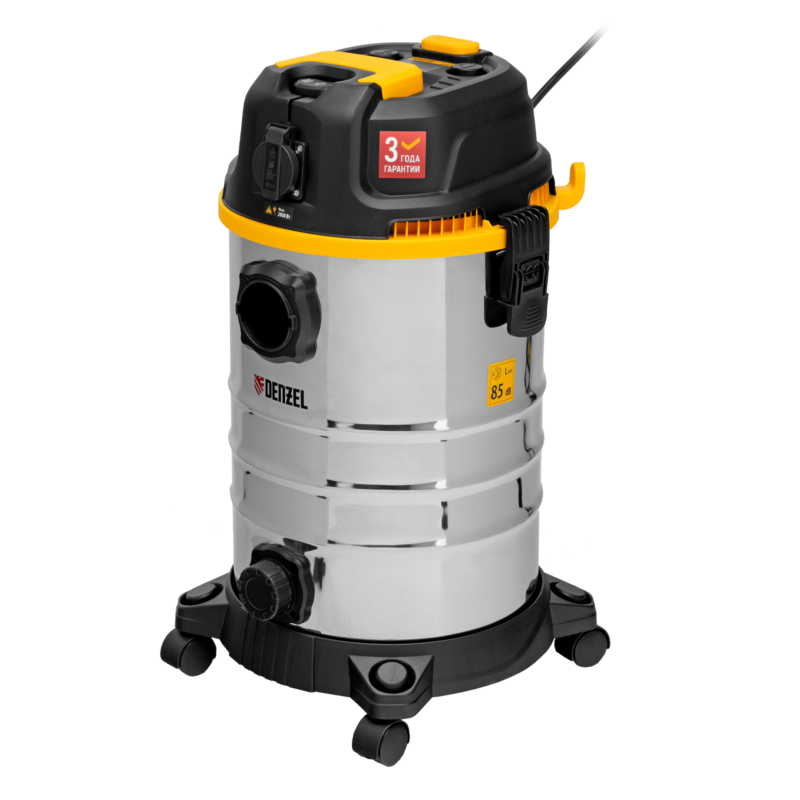 Пылесос строительный Denzel RVC30 28203 мощностью 1400 Вт, с баком объемом 30 л и шлангом длиной 3 м, оснащен розеткой с автосинхронизацией и предназначен для уборки бетонной, кирпичной пыли, опилок, стружки, также предусмотрена функция сбора воды. К пылесосу можно подключить электроинструмент, чтобы минимизировать количество пыли, образующейся в результате пиления, сверления, фрезерования. Техника используется во время проведения строительных и ремонтных работ, будет полезна для поддержания чистоты в мастерской, гараже, производственном помещении.