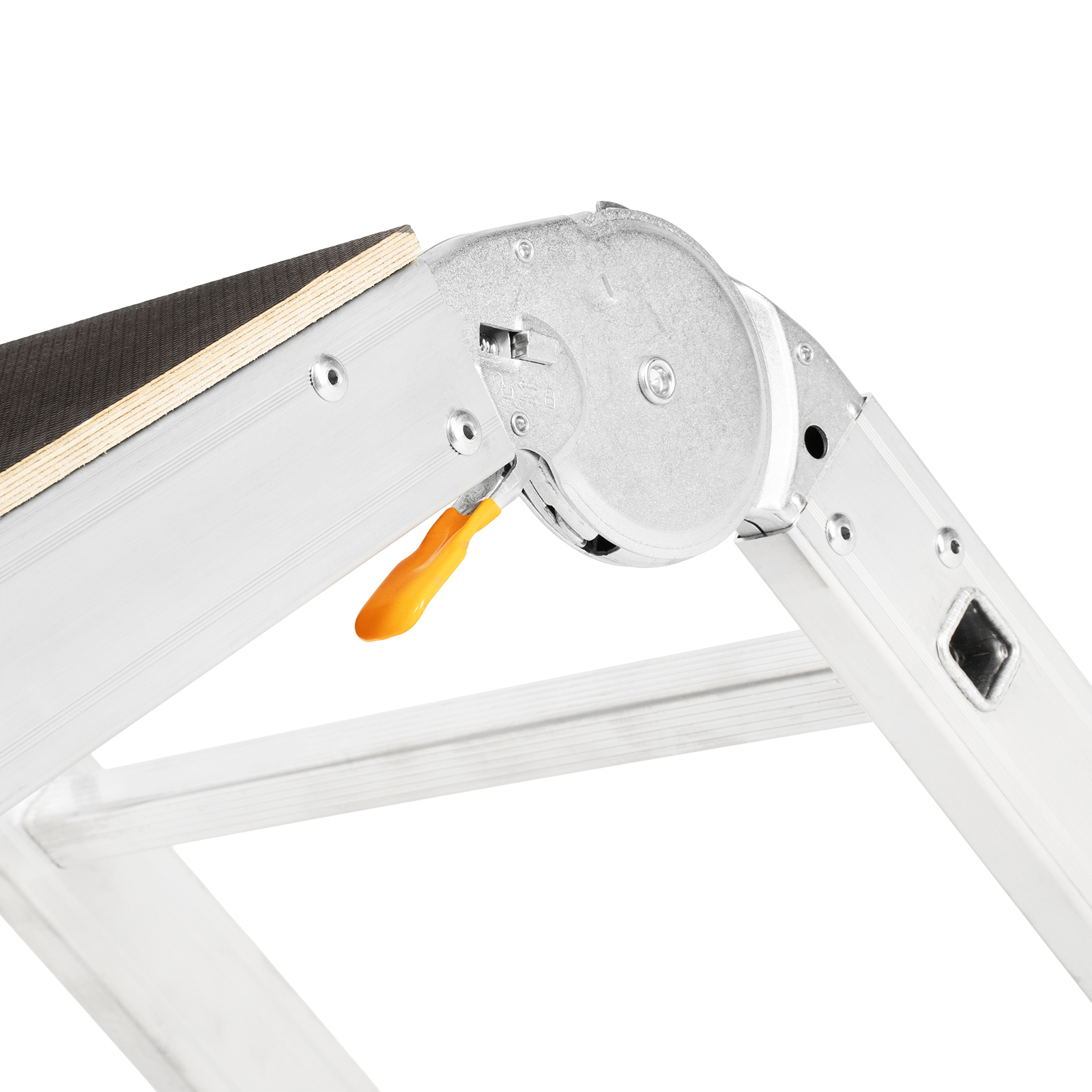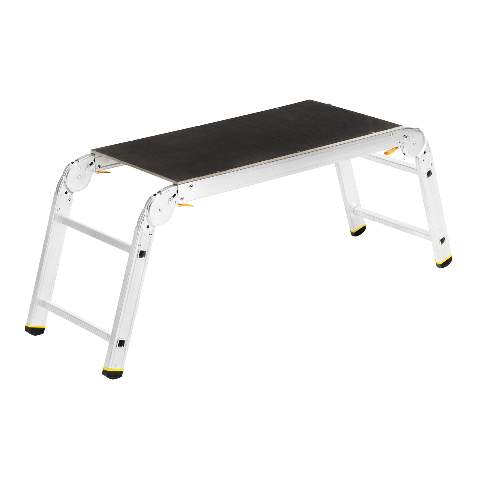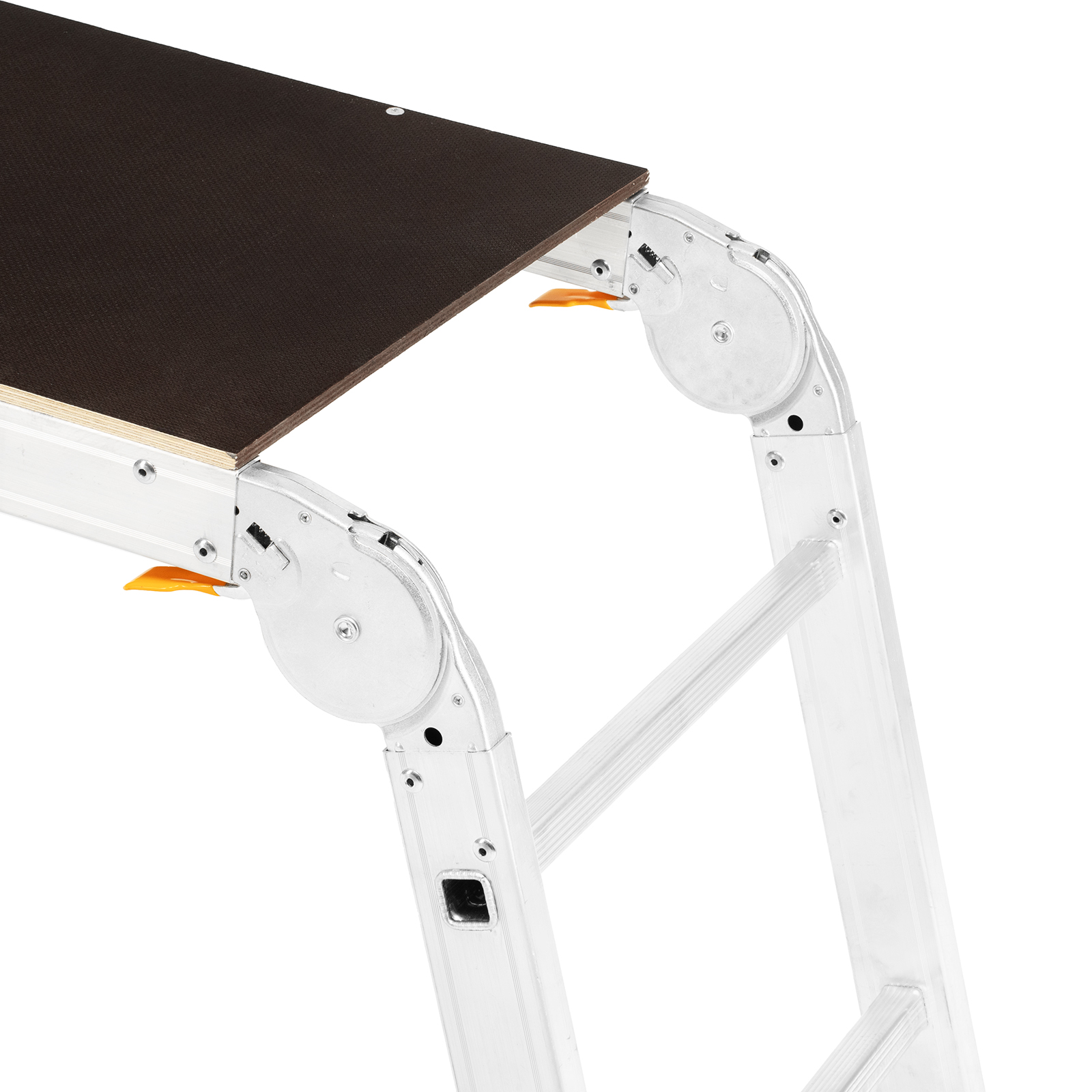 - Простая установка — подмости быстро устанавливаются и складываются, шарнирные замки легко регулируются и автоматически фиксируются.
