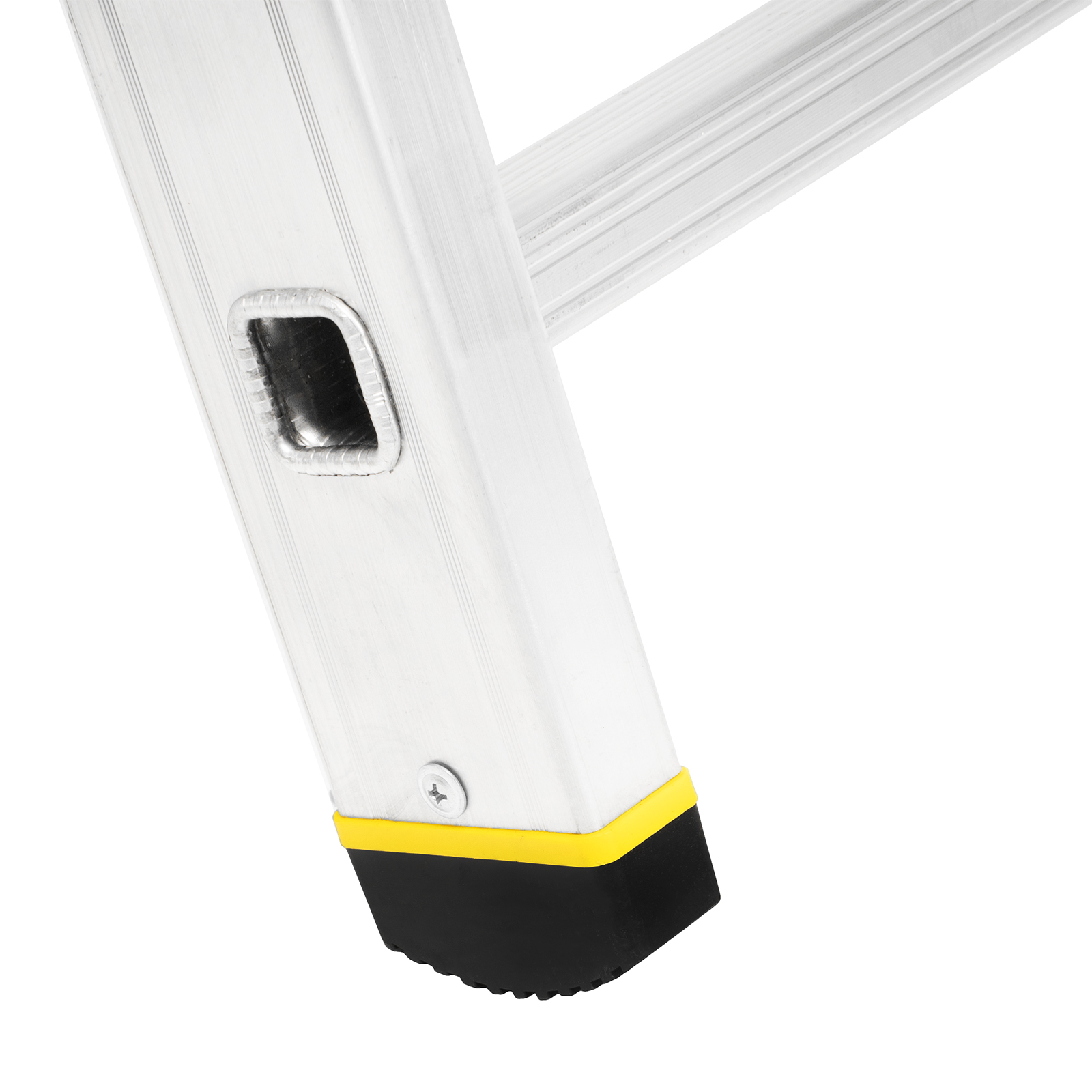 - Увеличенная прочность — стойки усилены в местах наибольшей нагрузки, многократная развальцовка обеспечивает надежное соединение ступеней со стойками.