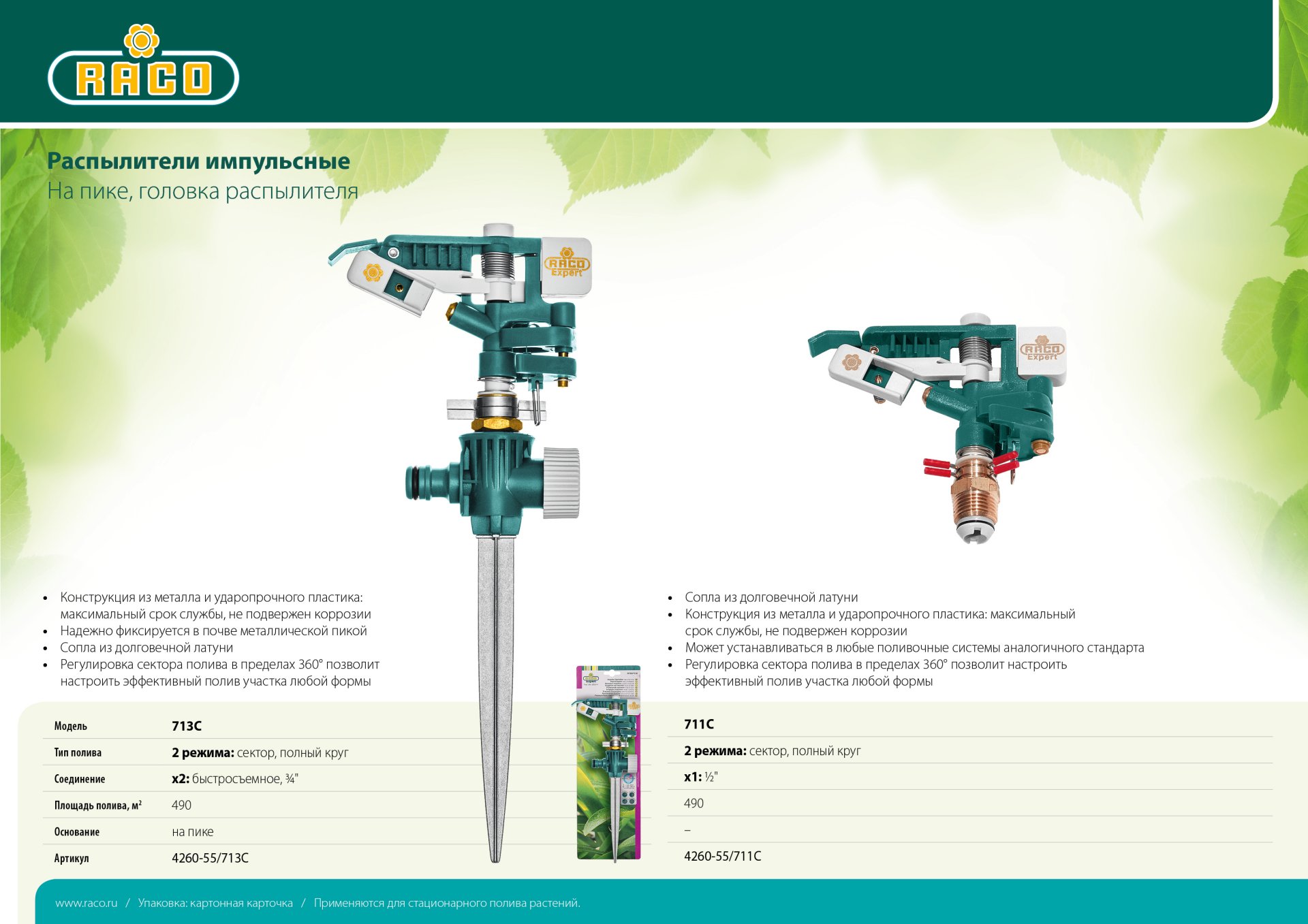 Стационарные распылители RACO обладают высоким уровнем качества, изготовлены из качественных материалов. Надёжны в работе, служат долго, исключительно удобны в использовании. Обеспечивают простое и качественное подключение к поливочной системе. Широкий ассортимент моделей для всех видов полива.