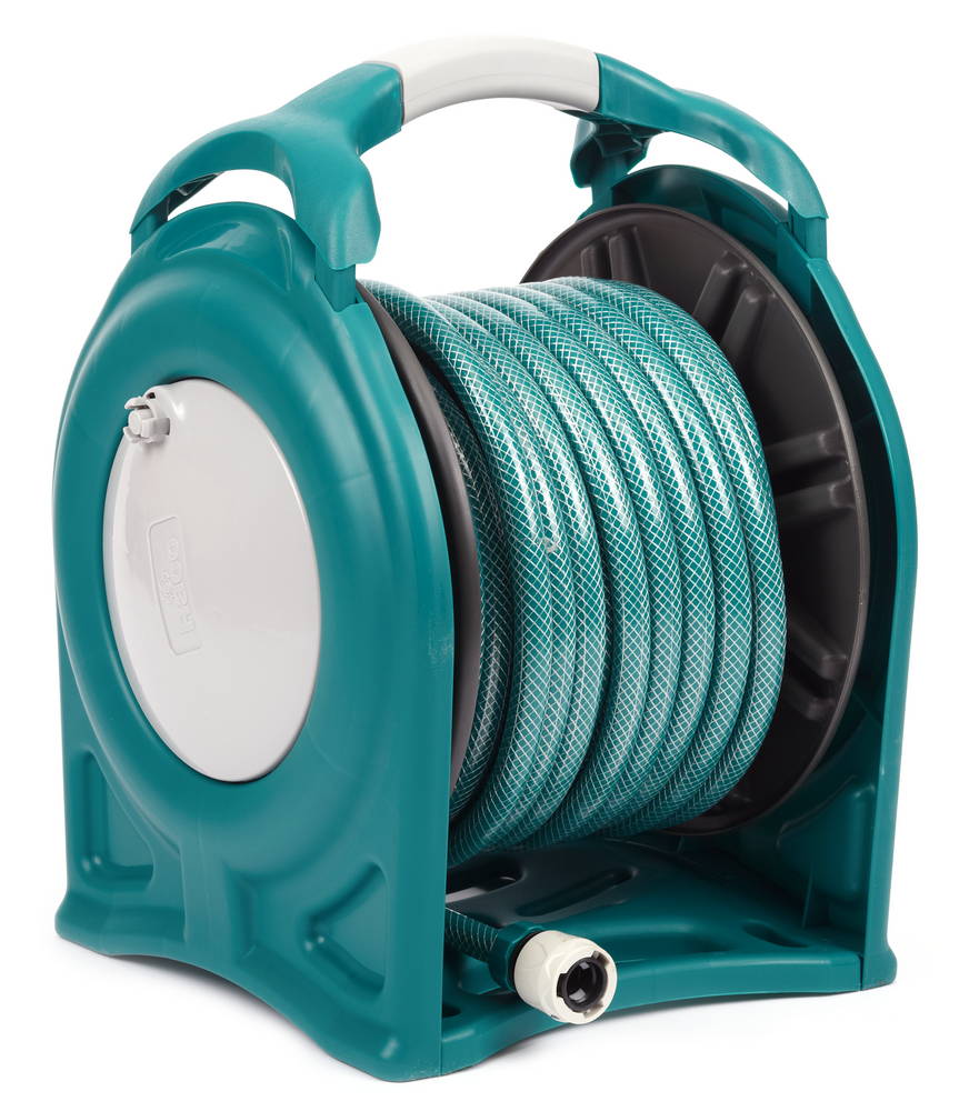 - Компактность катушки обеспечивает дополнительное удобство при хранении шланга и поливочной арматуры.