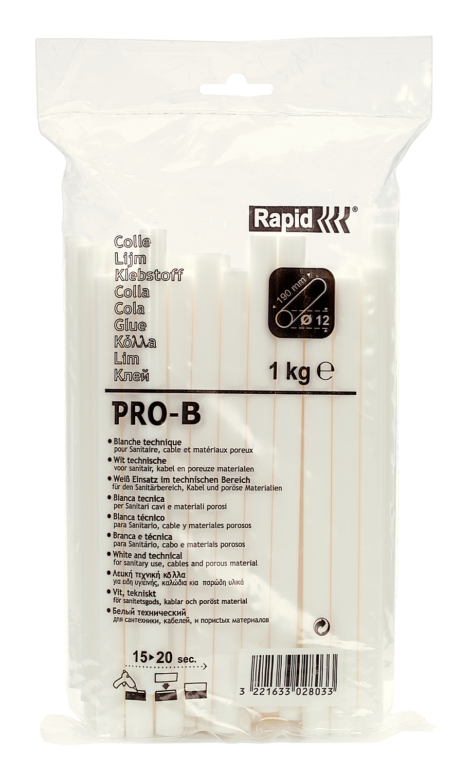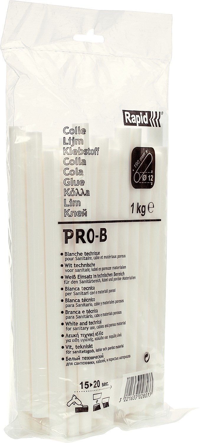 Эти 12миллиметровые белые клеевые стержни обеспечивают качественную склейку благодаря высокому содержанию связующего материала. Они идеально подходят для широкого круга профессиональных задач, при решении которых необходим белый цвет, например, при работе с сантехникой, кабелями или плиткой. Поставляются в больших, практичных упаковках, идеально подходящих для профессионального или промышленного использования.