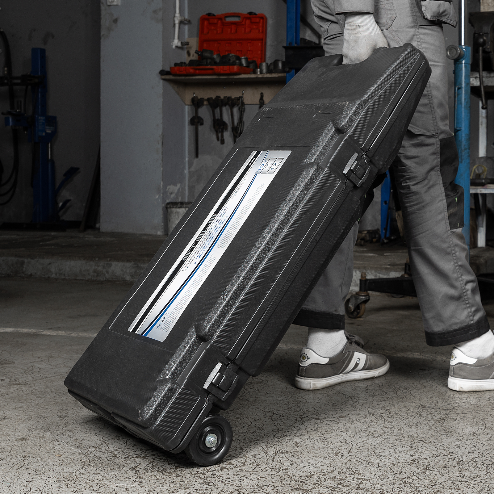 Удобное хранение и транспортировка — набор упакован в прочный пластиковый кейс с ложементом и колесами.