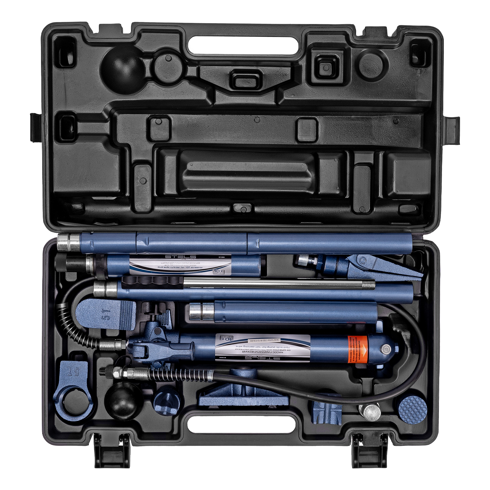 Гидравлическая растяжка Stels 51355, рассчитанная на усилие до 10 т, — компактный набор в пластиковом кейсе, включающий 17 предметов: цилиндр, гидронасос, адаптер, удлинители, основание и 7 сменных насадок. Его используют для проведения кузовного ремонта и рихтовки металлических конструкций. Растяжка удобна для восстановления геометрии проемов автомобильных дверей и окон, а также значительных по площади участков кузова. Комплект пригодится в автосервисе, а также для работы в гараже.