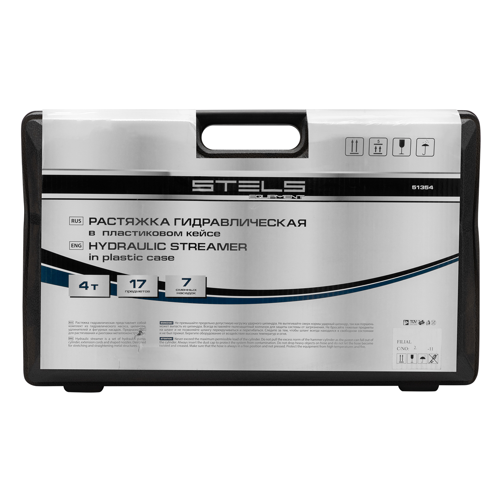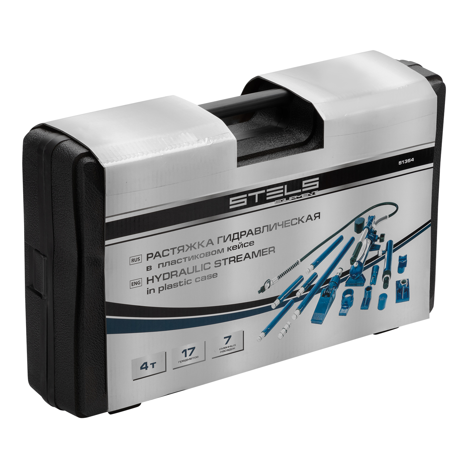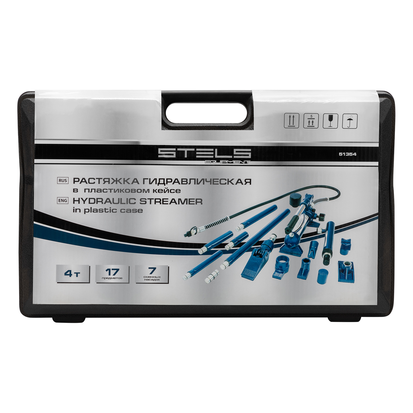 <p>Гидравлическая растяжка Stels 51354, рассчитанная на усилие до 4 т, — компактный набор в пластиковом кейсе, включающий 17 предметов: цилиндр, гидронасос, адаптер, удлинители, основание и 7 сменных насадок. Используется для проведения кузовного ремонта и рихтовки металлических конструкций. Растяжка удобна для восстановления геометрии проемов автомобильных дверей и окон, а также значительных по площади участков кузова. Комплект пригодится в автосервисе, а также для работы в гараже.</p><h2>Преимущества</h2><ul><li>Надежность — все элементы изготовлены из прочной стали и выдерживают повышенные нагрузки.</li><li>Функциональность — удлинители позволяют увеличить длину растяжки.</li><li>Работа с поверхностями разных форм и в труднодоступных местах — в набор входят фигурные насадки.</li><li>Удобное хранение и транспортировка — набор поставляется в пластиковом кейсе с ложементом.</li></ul>