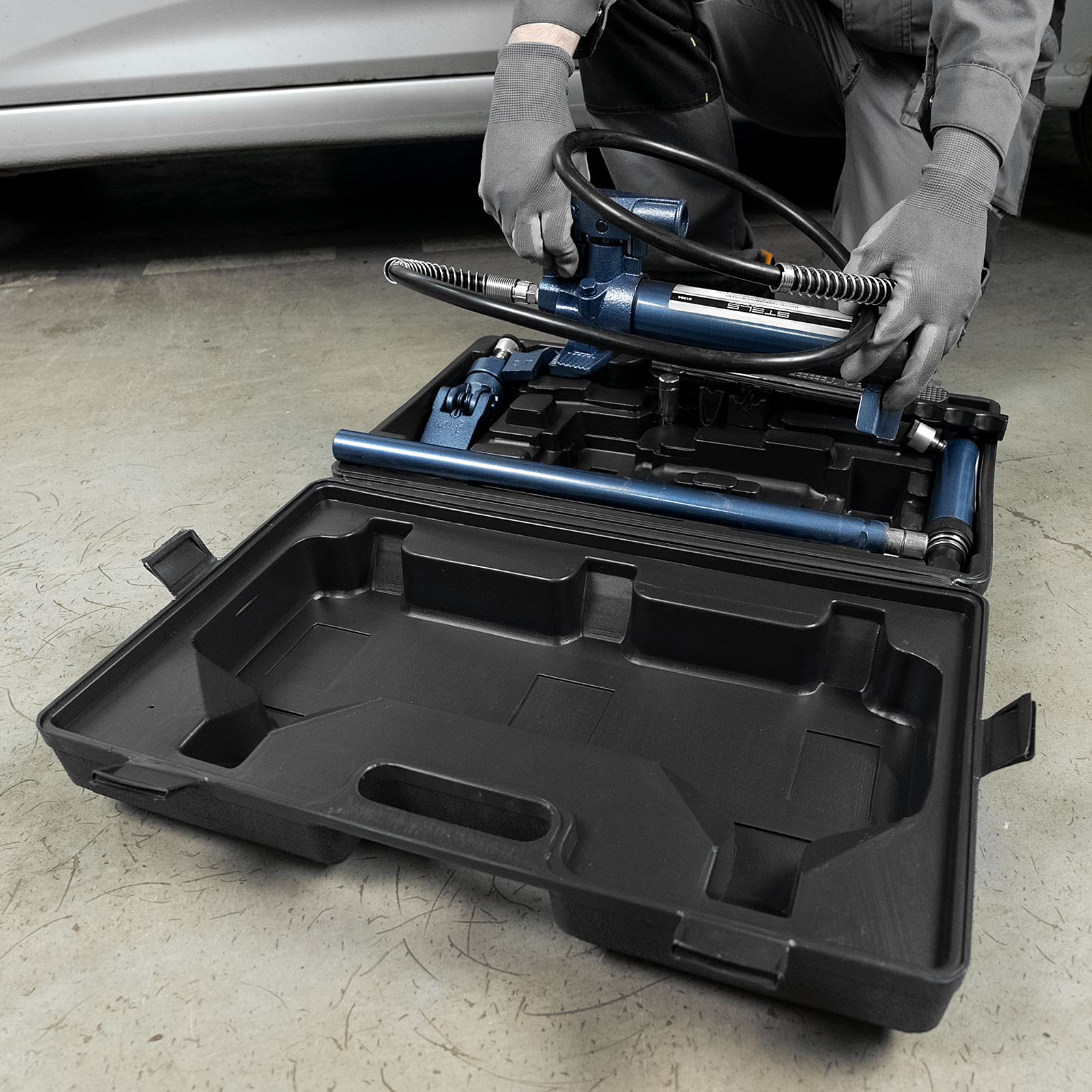 Гидравлическая растяжка Stels 51354, рассчитанная на усилие до 4 т, — компактный набор в пластиковом кейсе, включающий 17 предметов: цилиндр, гидронасос, адаптер, удлинители, основание и 7 сменных насадок. Используется для проведения кузовного ремонта и рихтовки металлических конструкций. Растяжка удобна для восстановления геометрии проемов автомобильных дверей и окон, а также значительных по площади участков кузова. Комплект пригодится в автосервисе, а также для работы в гараже.