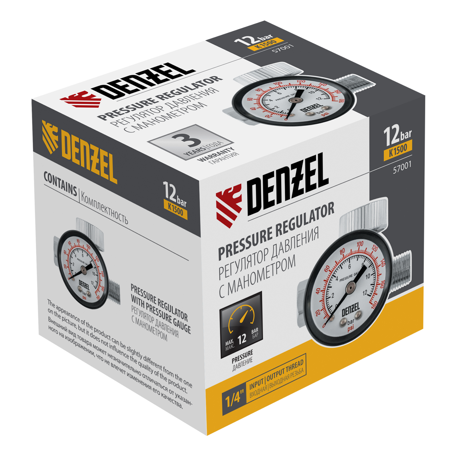 Регулятор Denzel K1500 57001 с присоединительным размером 1/4" имеет пропускную способность 1500 л/мин и предназначен для установки и поддержания на заданном уровне давления до 12 бар. Подключается к компрессору и позволяет обеспечить эффективную работу пневмоинструмента. Оптимален для использования совместно с краскораспылителем.