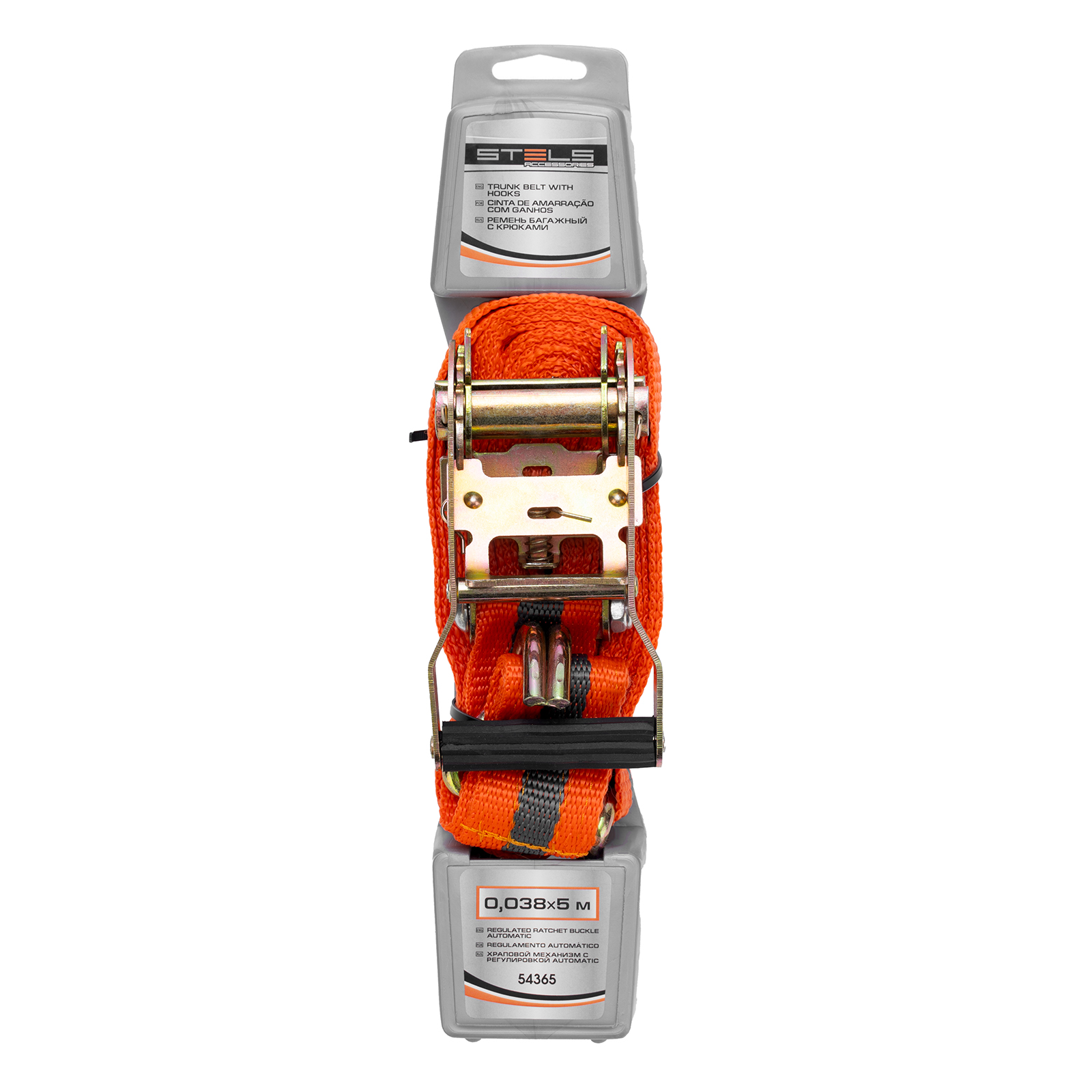 Багажный ремень с крюками Stels 54365 размером 0,038 х 5 м, с храповым механизмом Automatic, помогает закрепить груз в открытом багажнике на крыше легковой автомашины или в прицепе. Пригодится для транспортировки различных предметов.