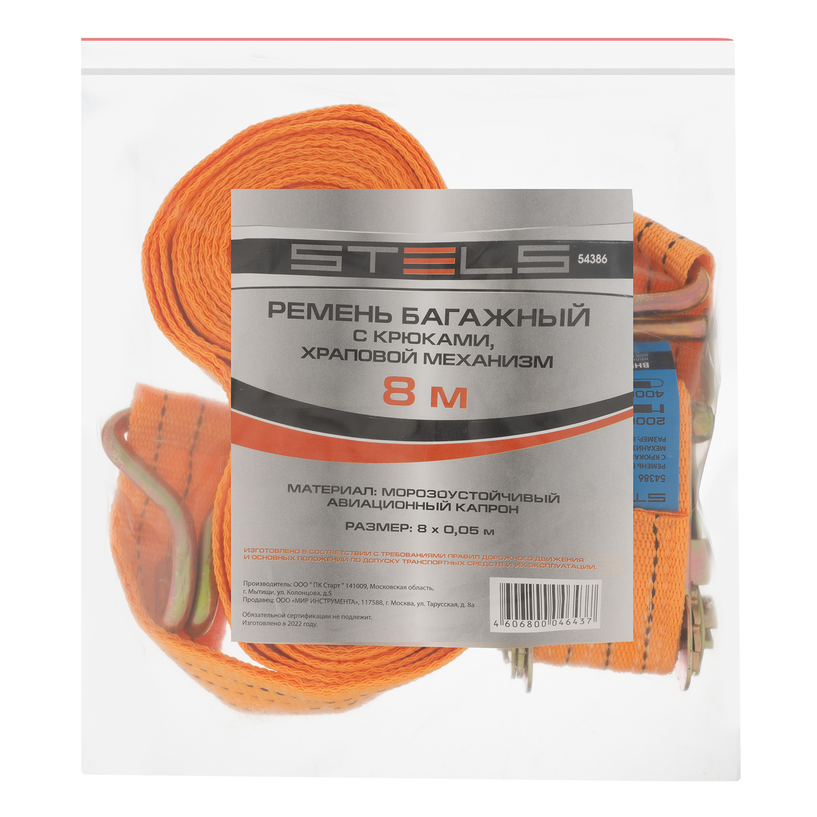Багажный ремень с крюками Stels 54386 шириной 5 см и длиной 8 м, с храповым механизмом, предназначен для фиксации грузов на решетчатых конструкциях, например, открытых автомобильных багажниках, а также в прицепах. Пригодится для транспортировки различных предметов.