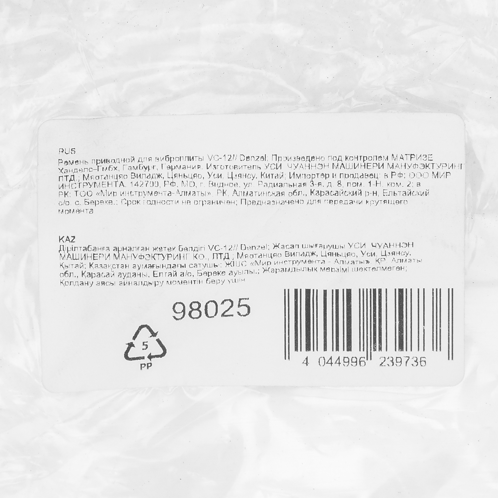 Приводной ремень Denzel 98025 передает крутящий момент с выходного вала, обеспечивая эффективное функционирование виброплиты Denzel VC-12. Позволяет восстановить работоспособность техники в случае растяжения или обрыва установленного ремня.
