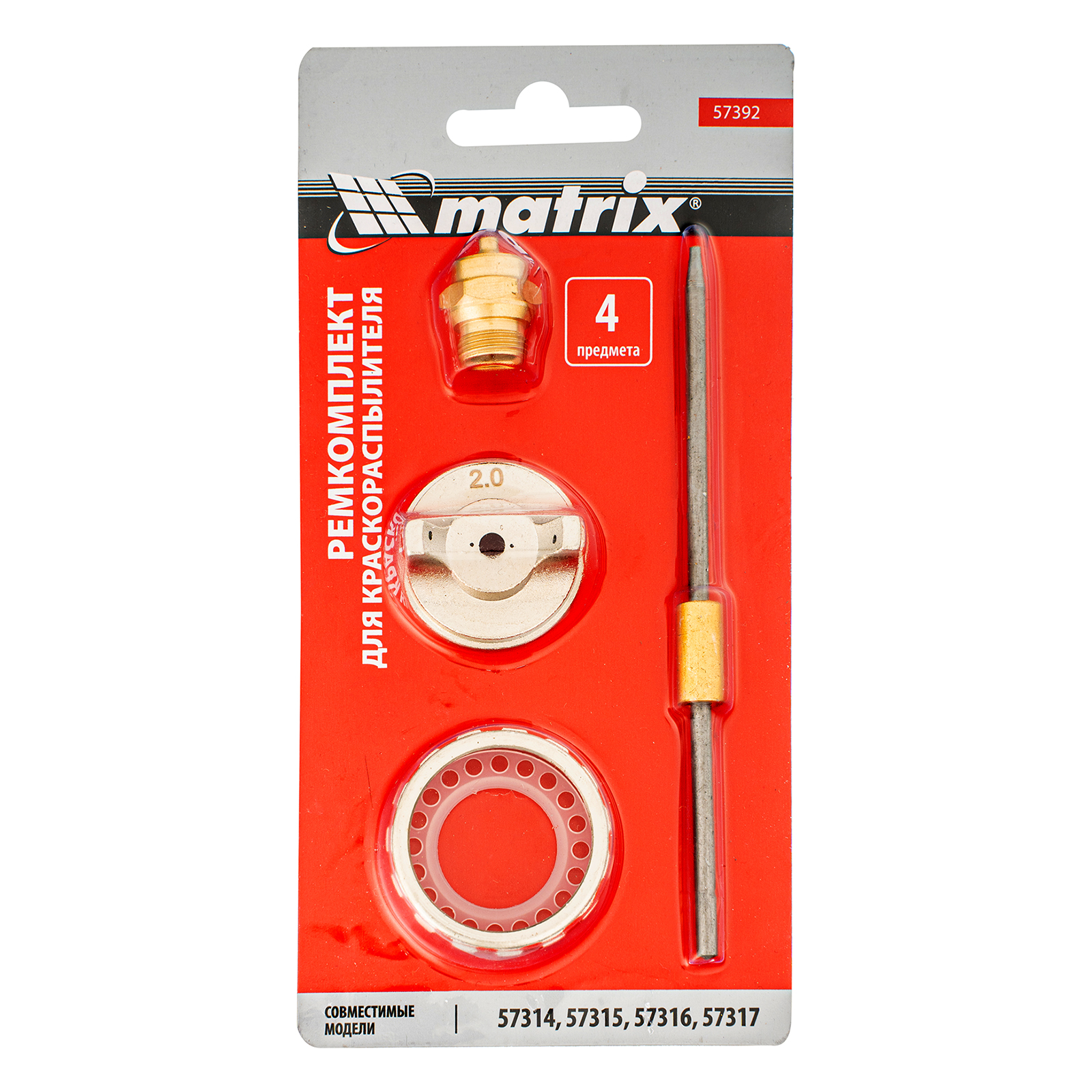 Ремкомплект для краскораспылителя Matrix 57392 состоит из 4 предметов: сопла диаметром 2 мм, иглы, форсунки и зажима сопла. Набор можно использовать для восстановления работоспособности краскопульта или расширения возможностей его использования. Совместимые краскопульты Matrix 57314, 57315, 57316, 57317.