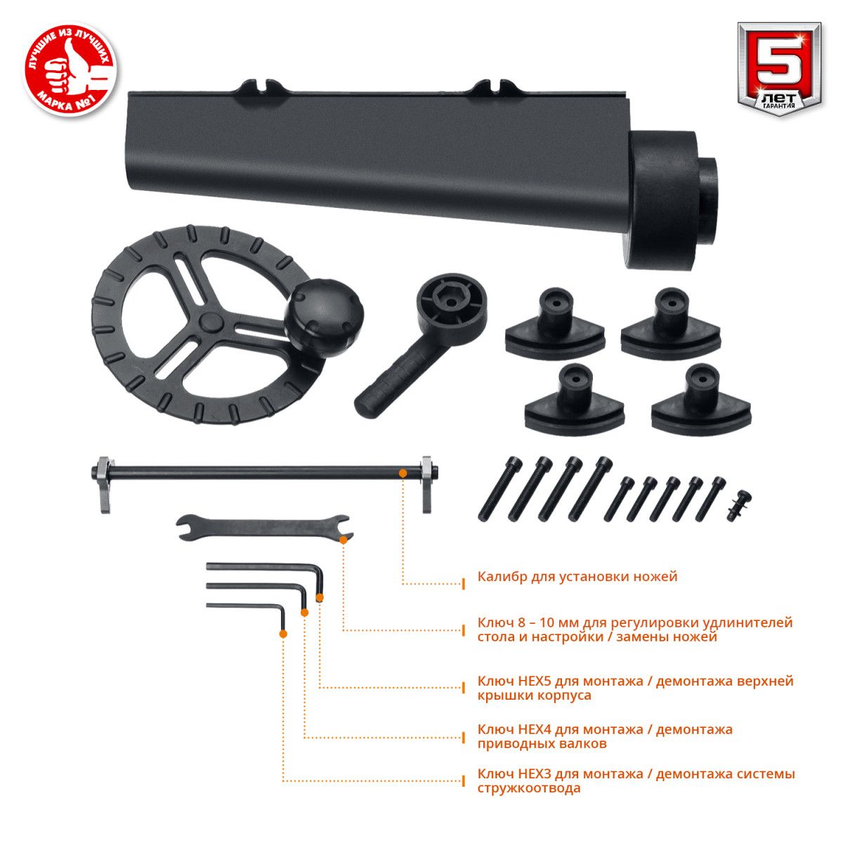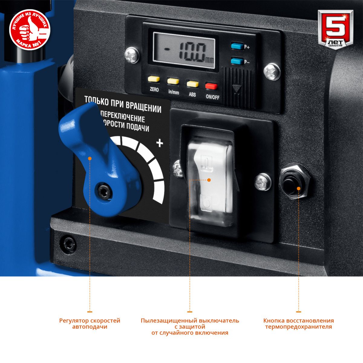 Блокировка от случайного включения, Возможность стационарного крепления, Регулировка глубины строгания