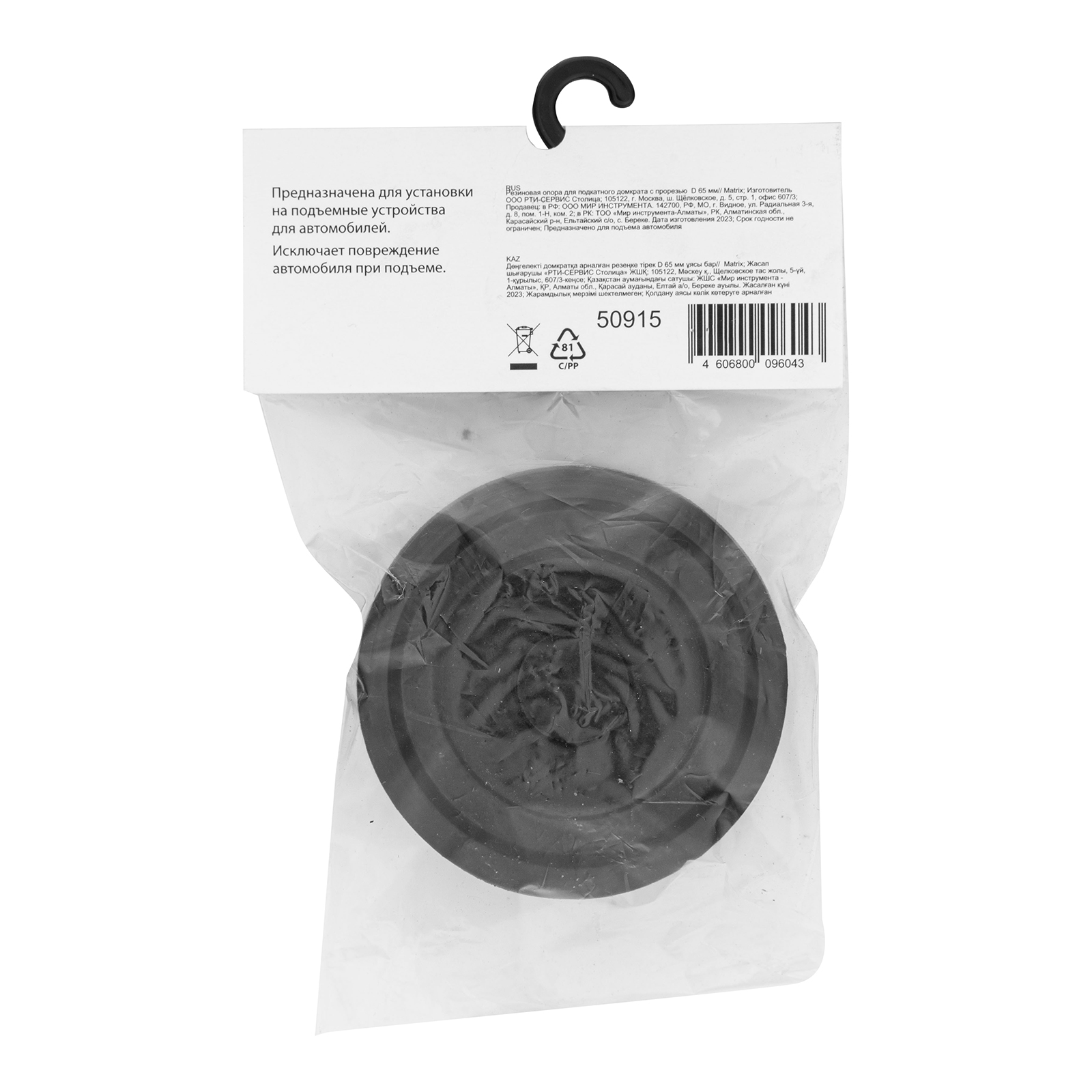 Резиновая опора с прорезью Matrix 50915 диаметром 65 мм предотвращает повреждение кузова автомобиля в месте упора с подкатным домкратом, а также препятствует поломке самого домкрата. Позволяет осуществить качественный ремонт машины в гараже или автосервисе.