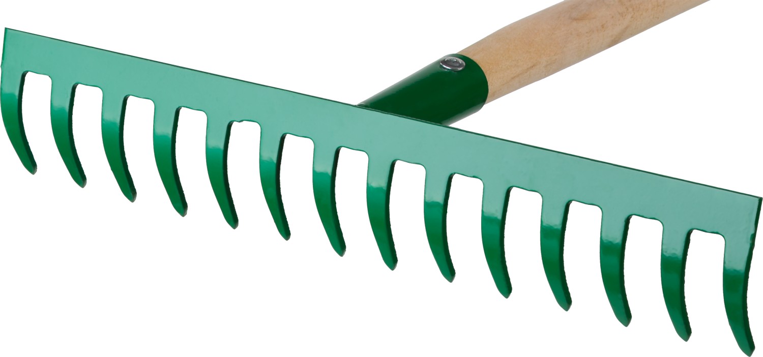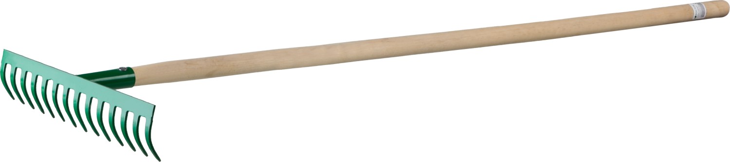 РОСТОК 355 x 80 x 1300 мм, 14 прямых зубьев, рабочая поверхность из стали, покрытие краска, черенок деревянный высш. сорт, грабли (421901-14)
