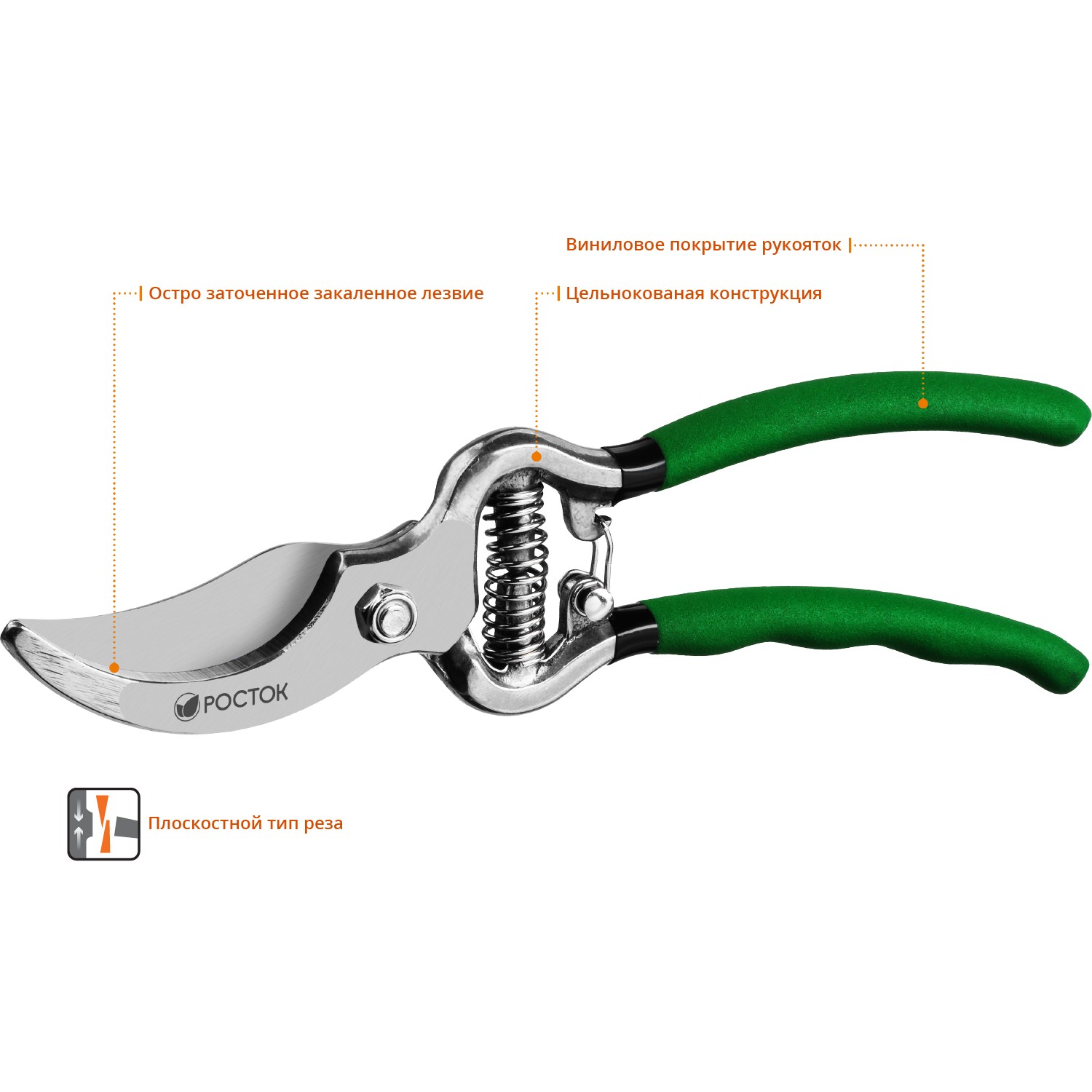 Все секаторы РОСТОК произведены на высокоточном оборудовании из качественных материалов, что гарантирует чистый рез и продолжительный срок службы.0