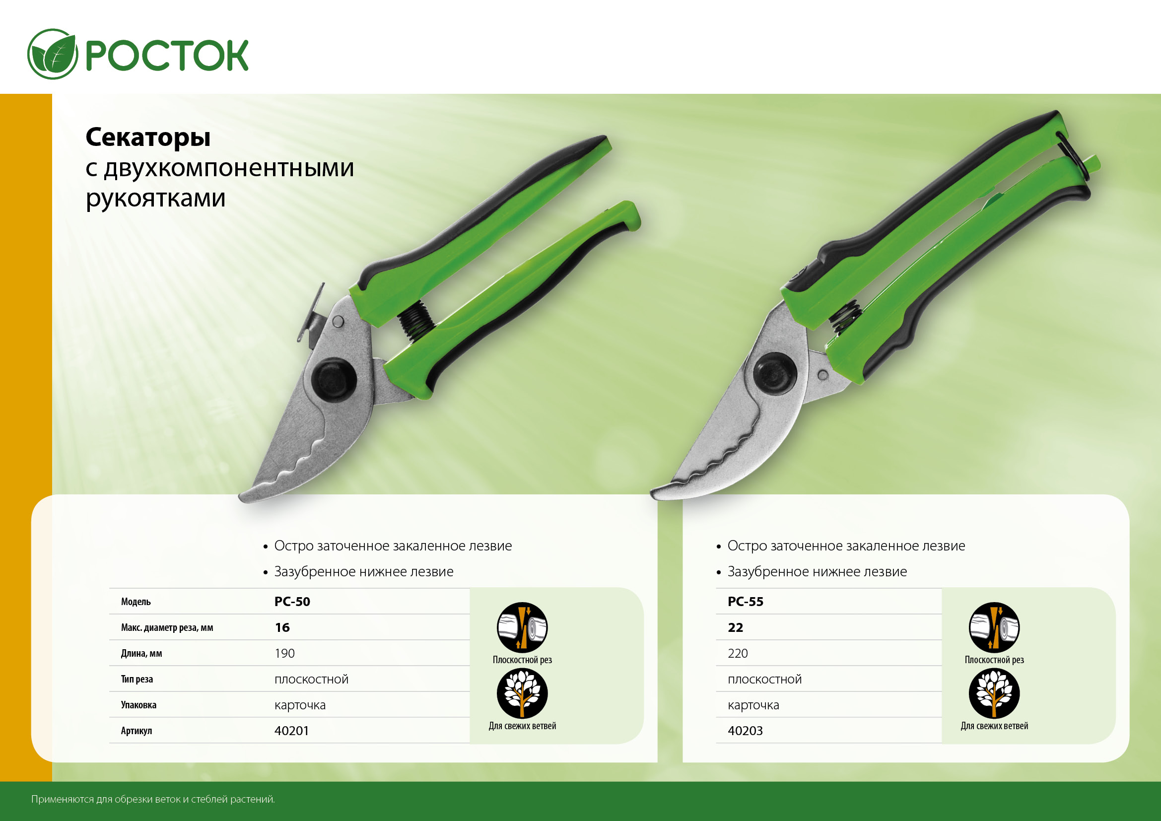 Секаторы РОСТОК произведены из качественных материалов на высокоточном оборудовании, что гарантирует чистый рез и продолжительный срок службы изделия. Применяются для обрезки веток деревьев и кустарников, а также стеблей цветов.