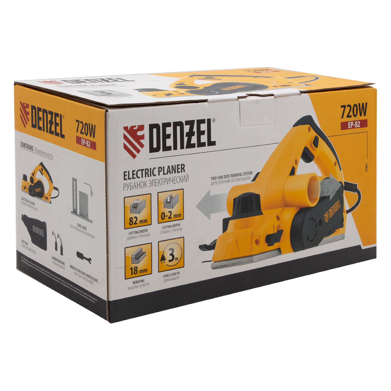 Электрический рубанок Denzel EP-82 27801 мощностью 720 Вт обеспечивает ширину обработки 82 мм и предназначен для строгания плоских деревянных поверхностей, снятия фасок, выборки четверти. Частота вращения барабана составляет 16000 об/мин, выборка четверти производится на глубину до 18 мм, что позволяет эффективно решать поставленные задачи. Инструмент подходит для бытового использования.