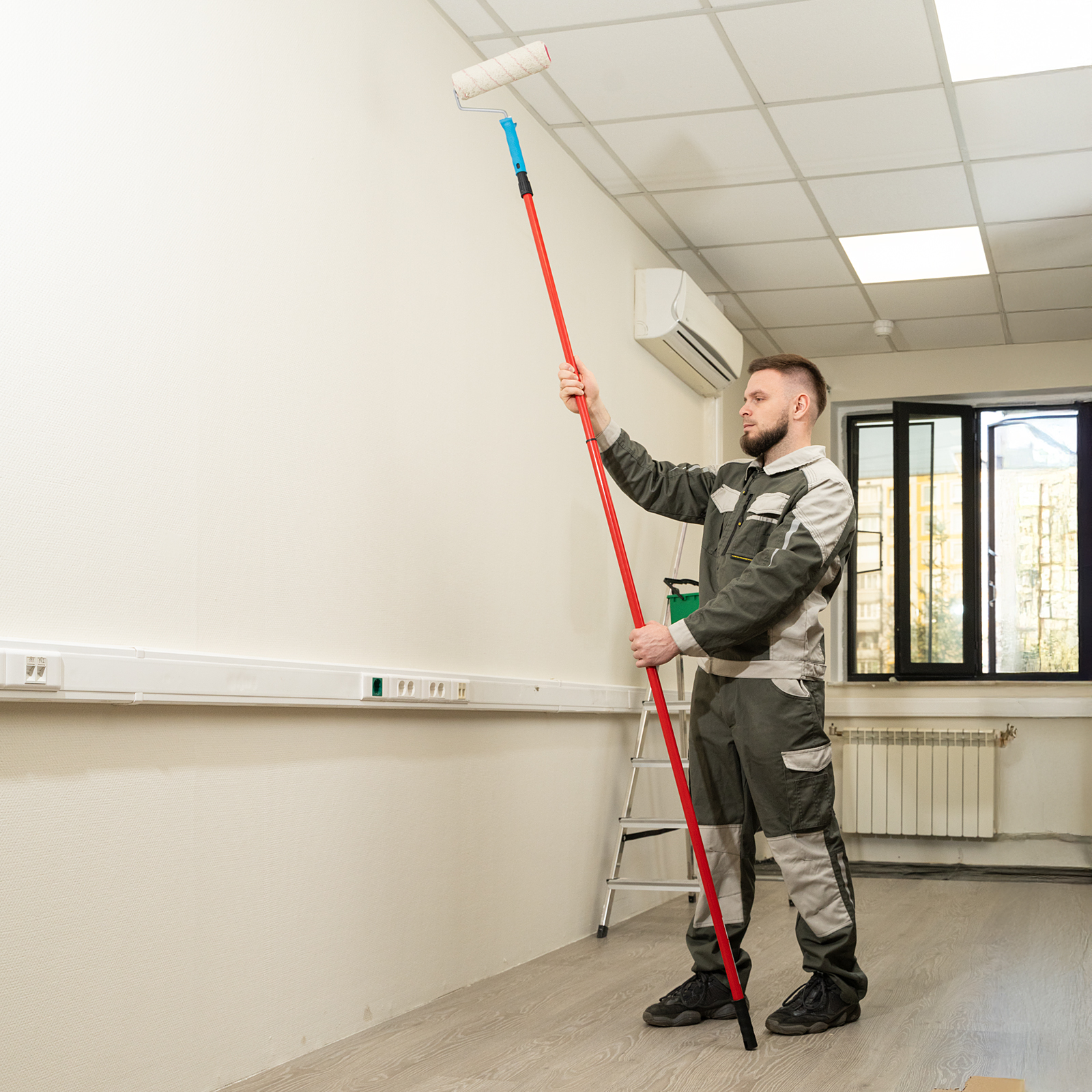 - Комфортная работа на высоте — ручка избавляет мастера от необходимости использования стремянки и строительной туры.
