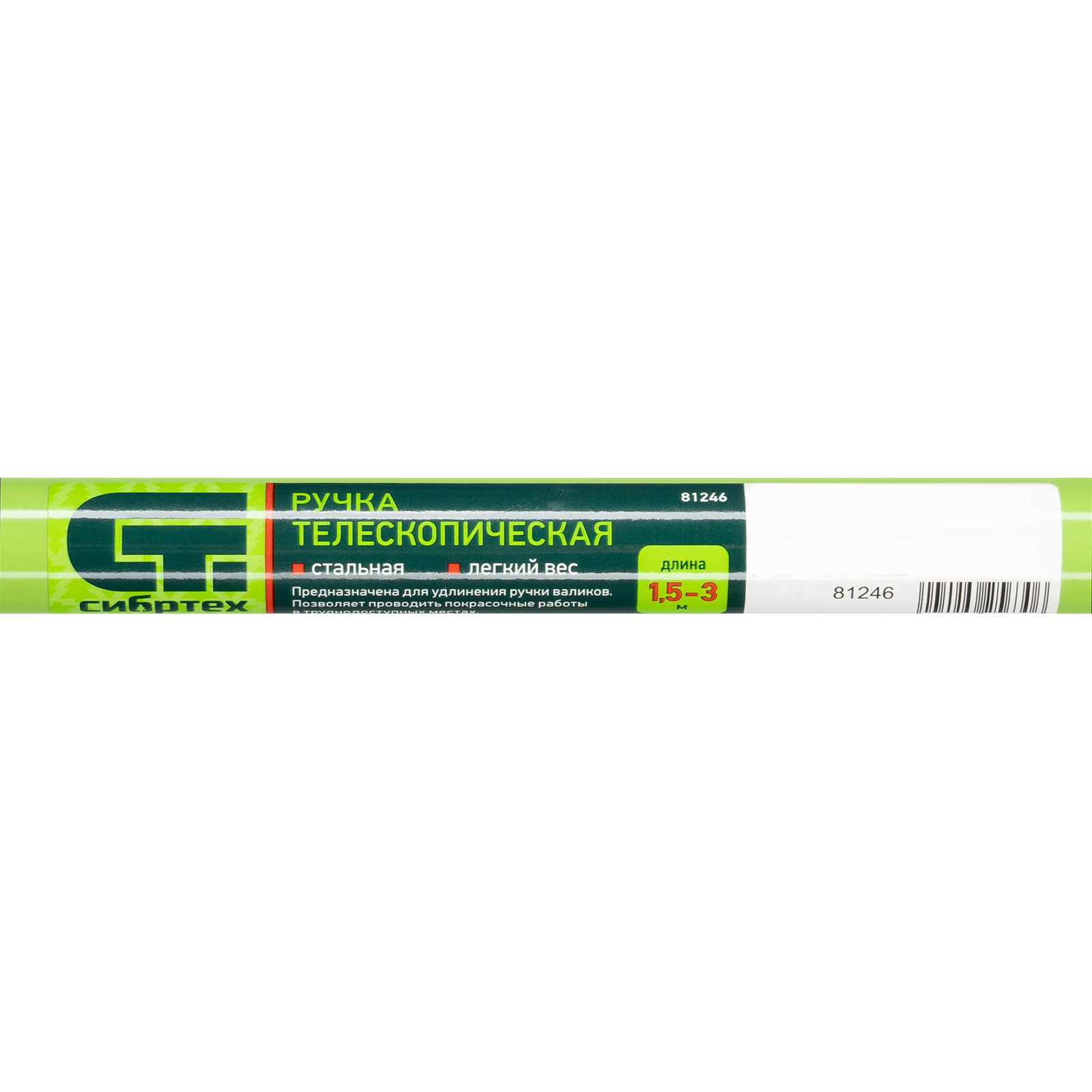 Телескопическая металлическая ручка Сибртех 81246 регулируется по длине в диапазоне 1,5-3 м и используется для проведения малярно-отделочных работ: окрашивания высоких стен и потолков, прокатки обоев. Совместима не только с валиками, но и с маховыми кистями, раклями и макловицами, что расширяет возможности ее применения.