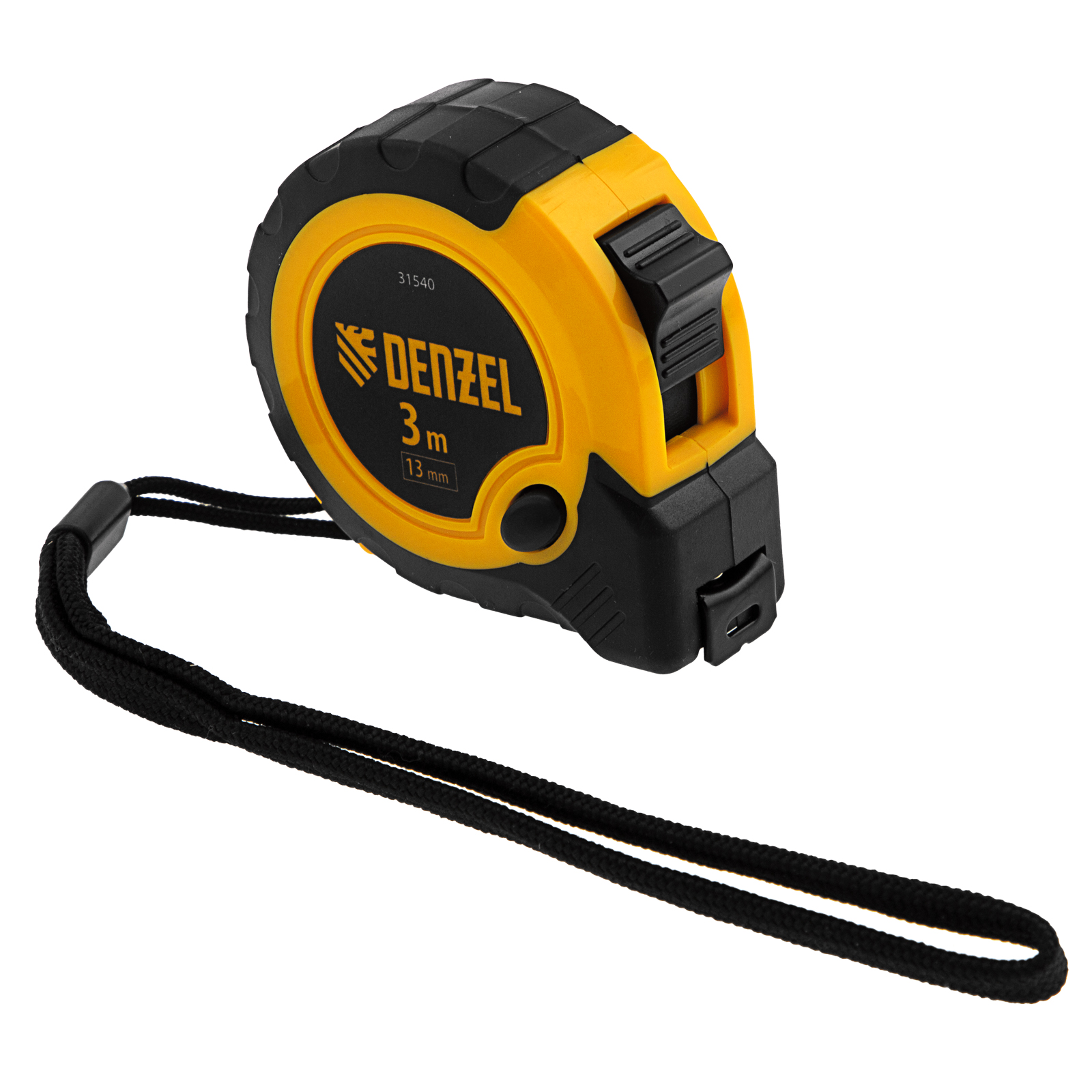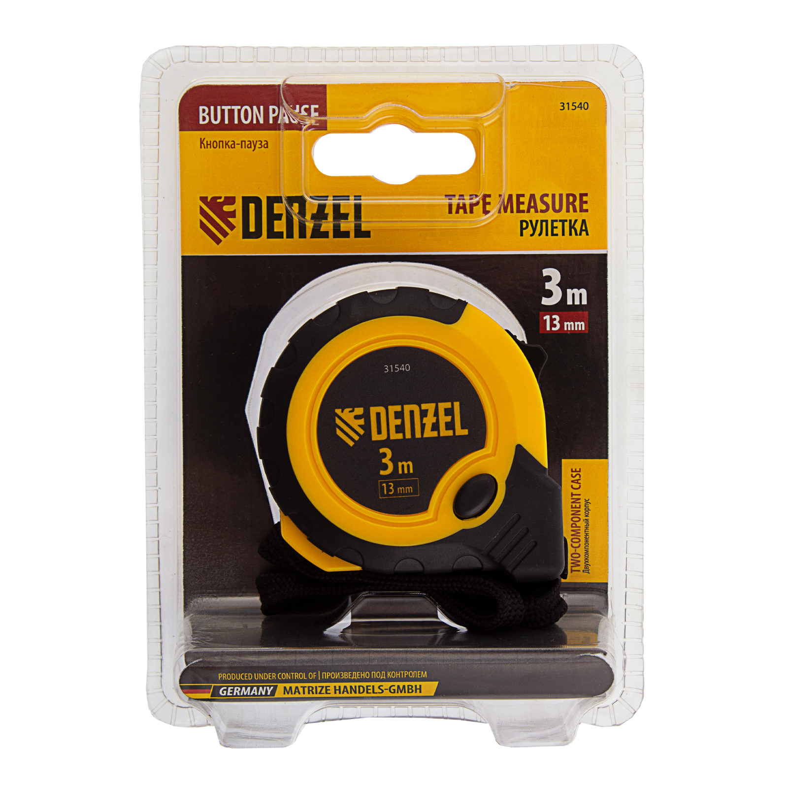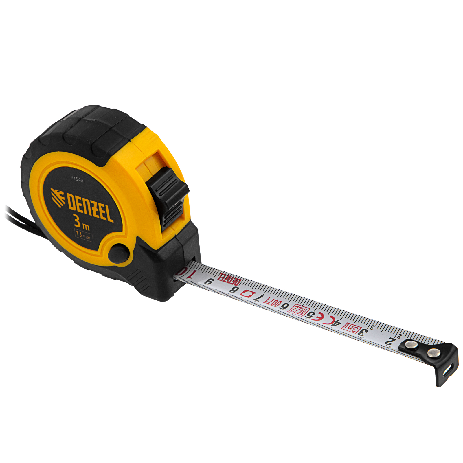 Рулетка Denzel 31540 в двухкомпонентном корпусе, с кнопкой-паузой, с полотном шириной 13 мм и длиной 3 м, используется для измерения расстояний и размеров предметов. Стальная лента с эмалевым покрытием и защитной пластиной в месте крепления зацепа рассчитана на долгий срок службы. Рулетка будет полезна во время строительства и ремонта, а также пригодится в быту.