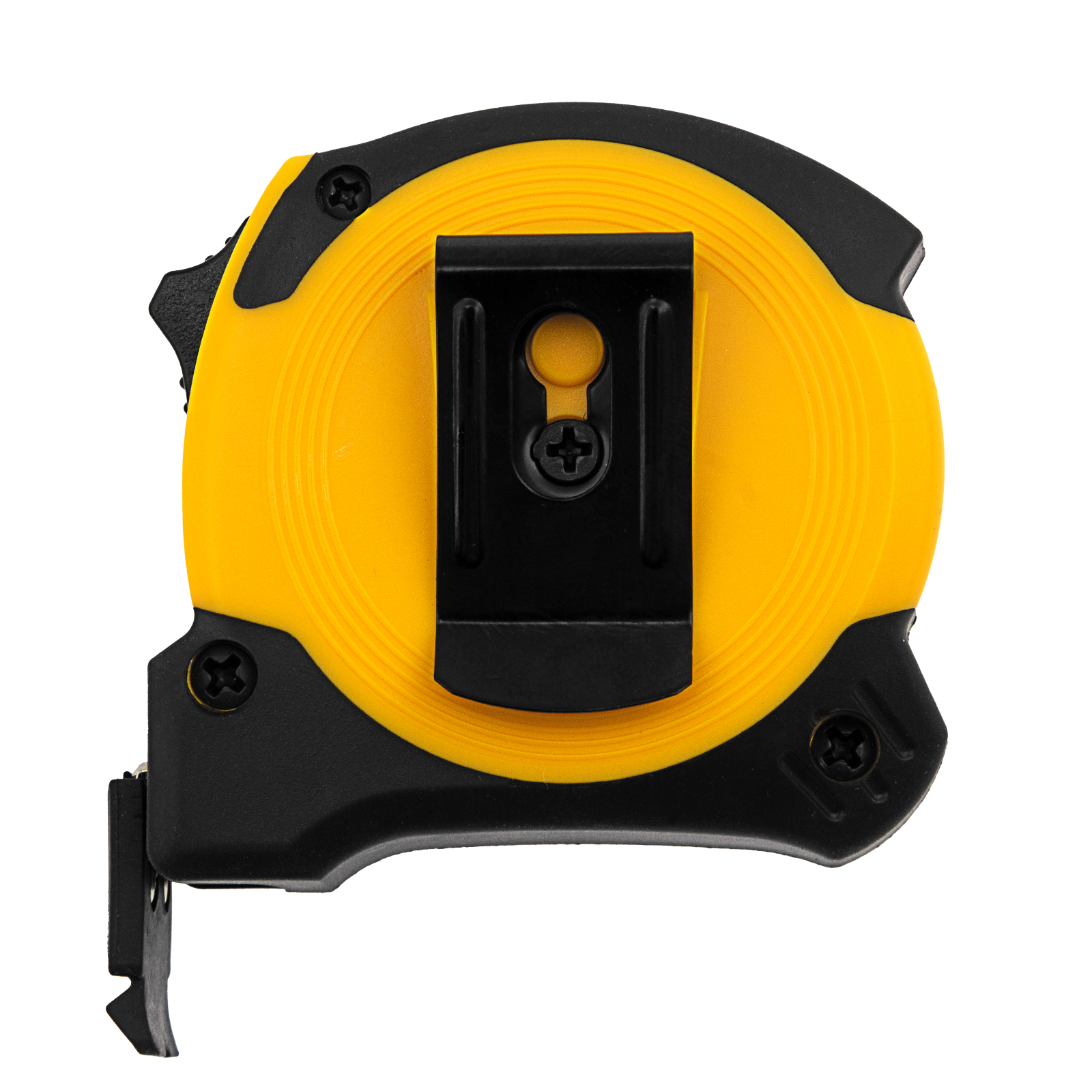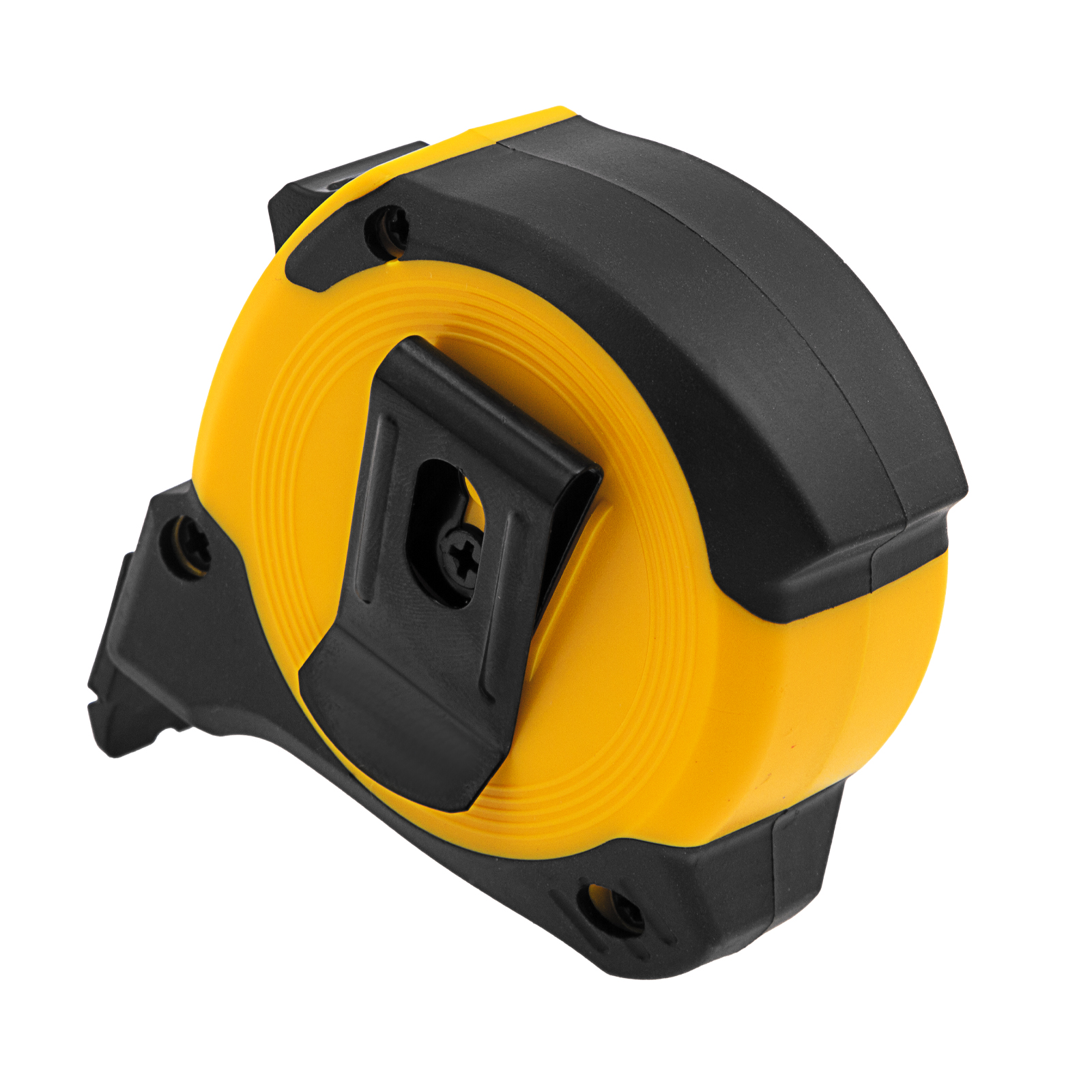 - Удобная фиксация на ремне — рулетка дополнена поясным зажимом.