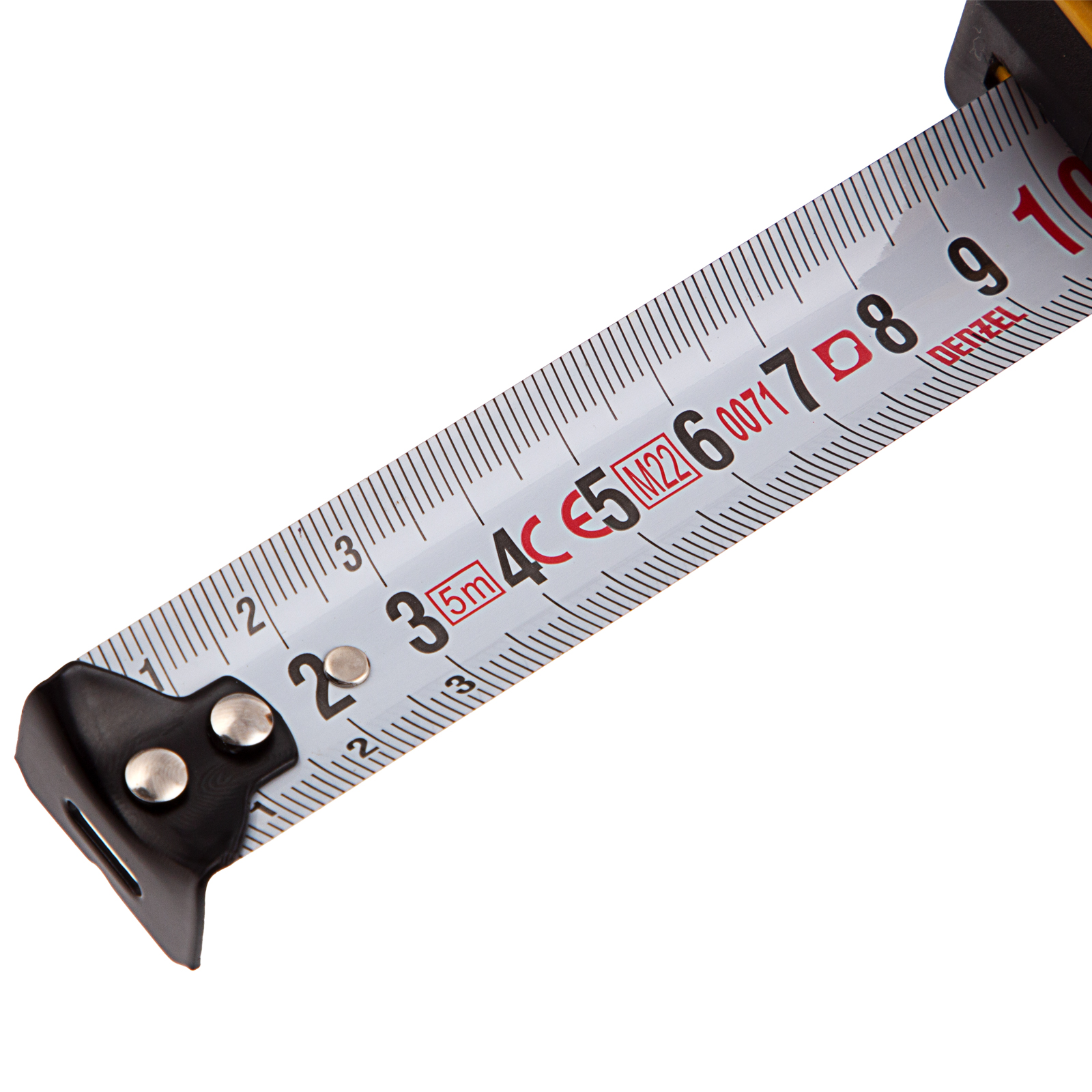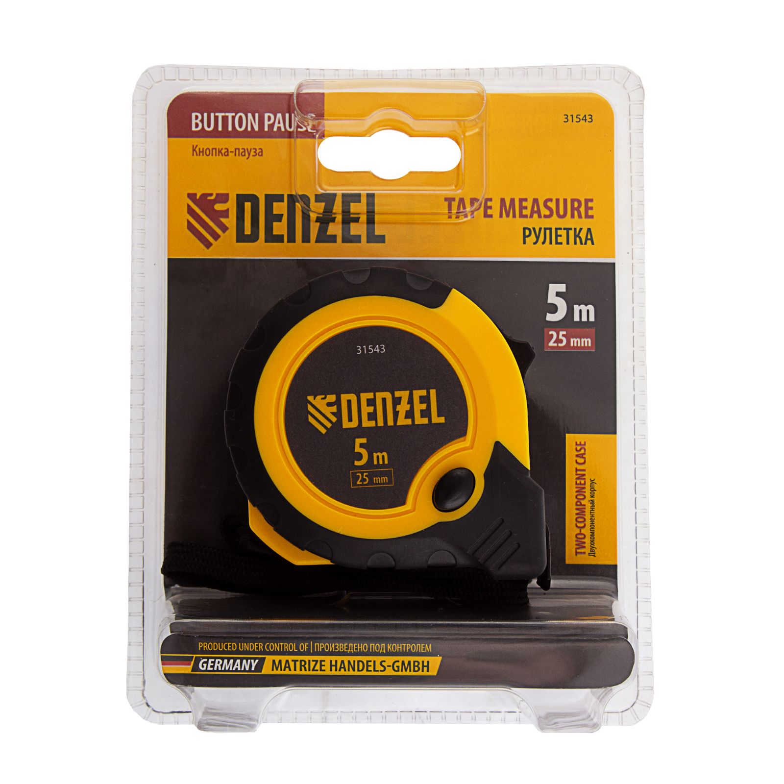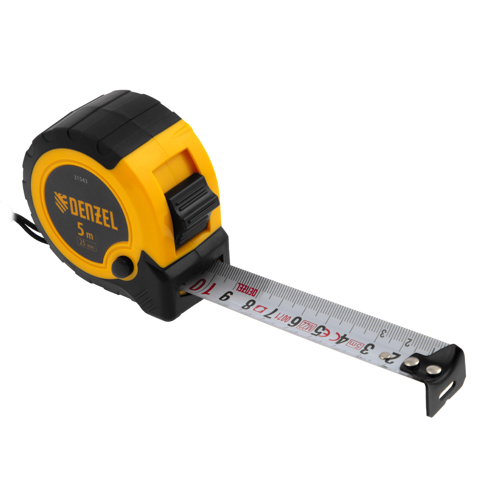 Рулетка Denzel 31543 в двухкомпонентном корпусе, с кнопкой-паузой, с полотном шириной 25 мм и длиной 5 м, используется для измерения расстояний и размеров предметов. Удобна для работы в труднодоступных местах. Стальная лента с эмалевым покрытием и защитной пластиной в месте крепления зацепа рассчитана на долгий срок службы. Рулетка будет полезна во время строительства и ремонта, а также пригодится в быту.