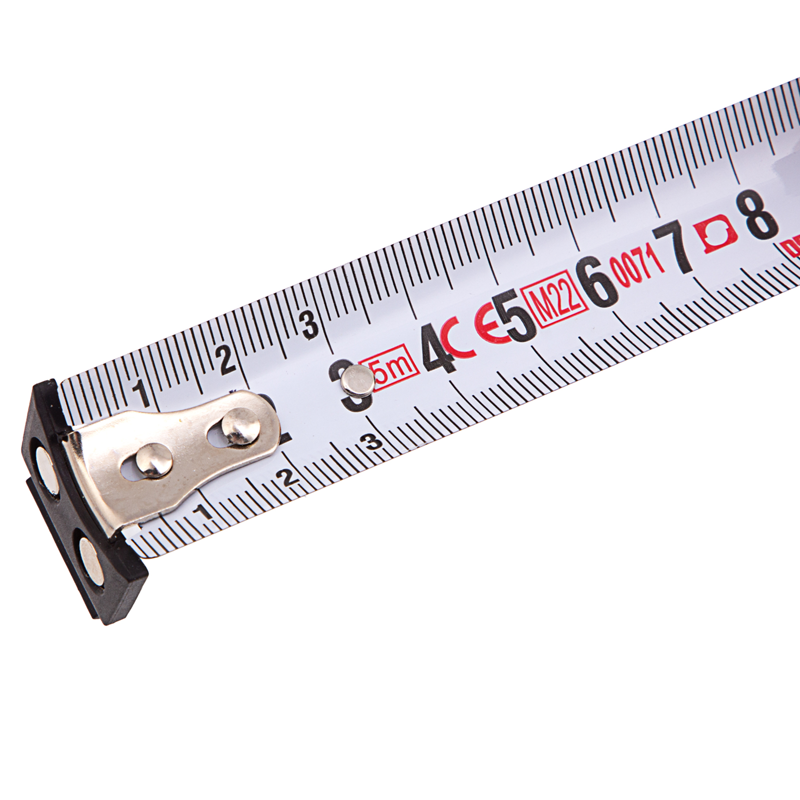 - Надежность — стальная лента с эмалевым покрытием и защитной пластиной в месте крепления зацепа выдерживает интенсивное использование.